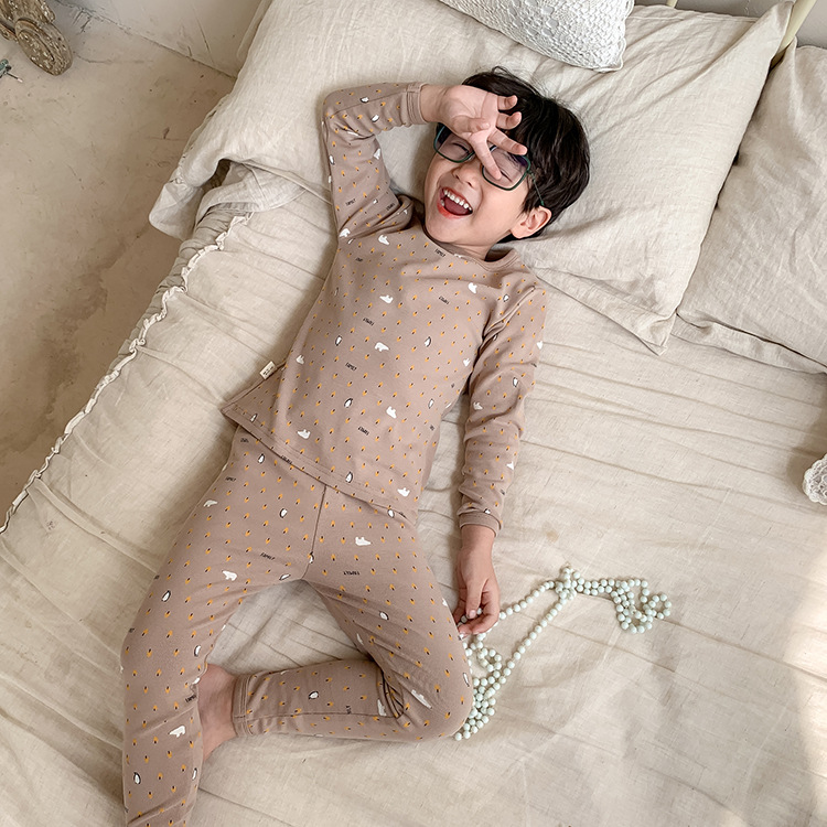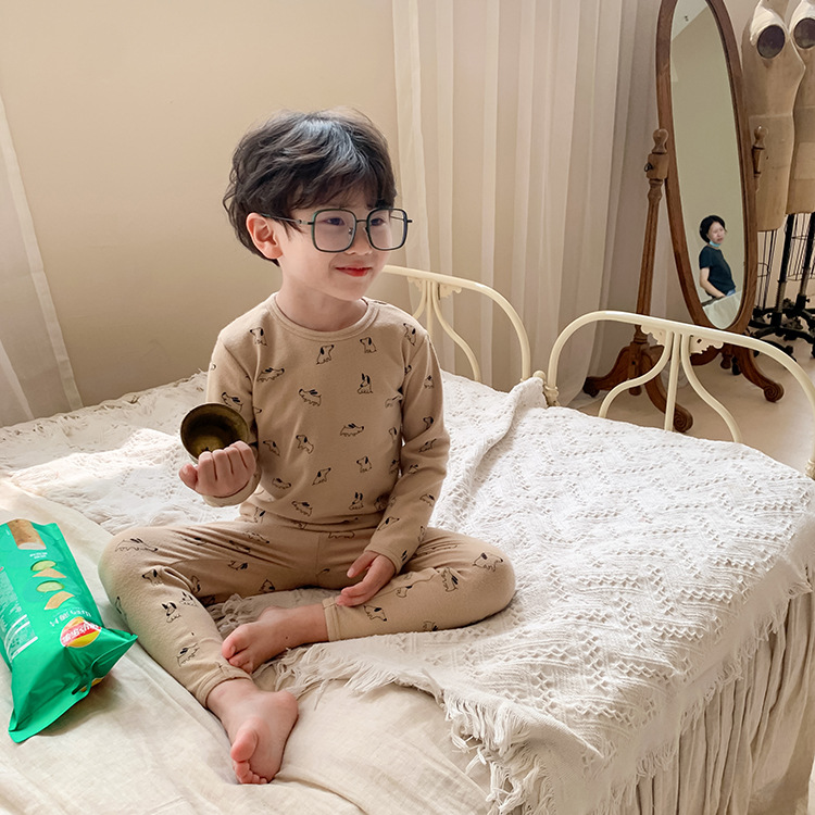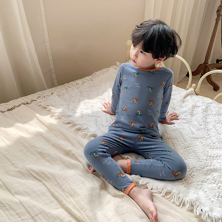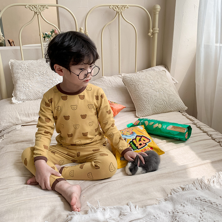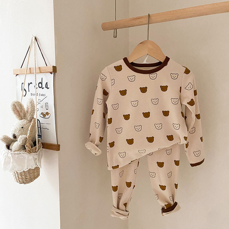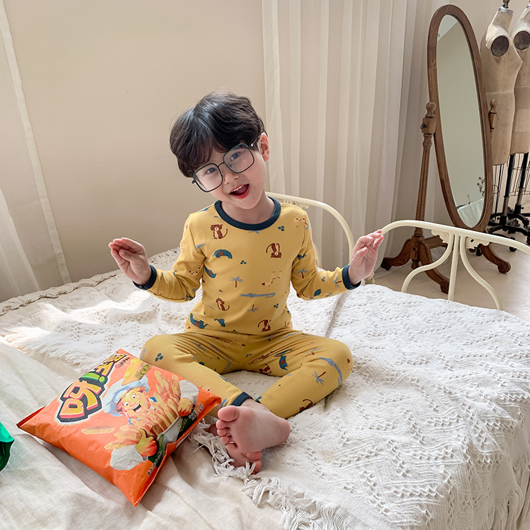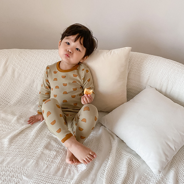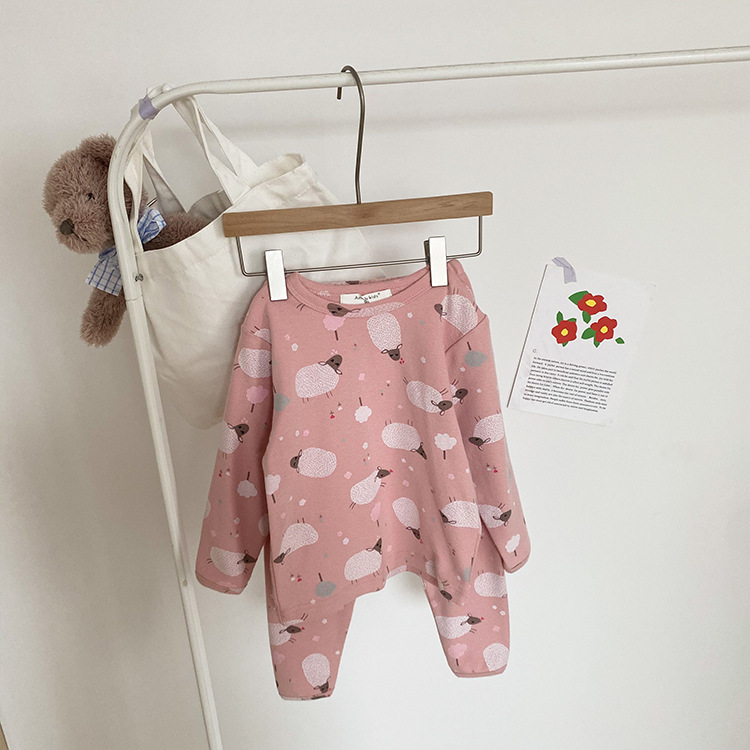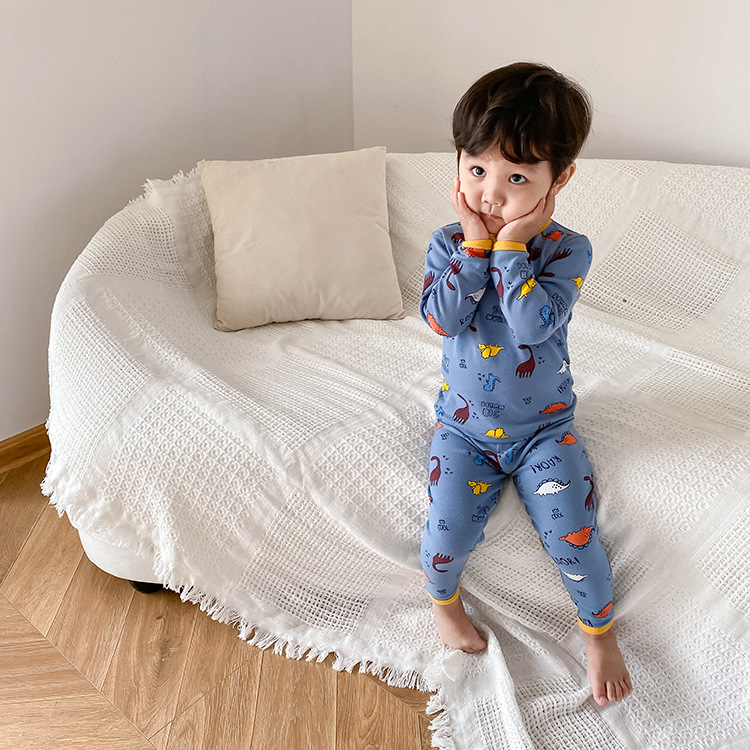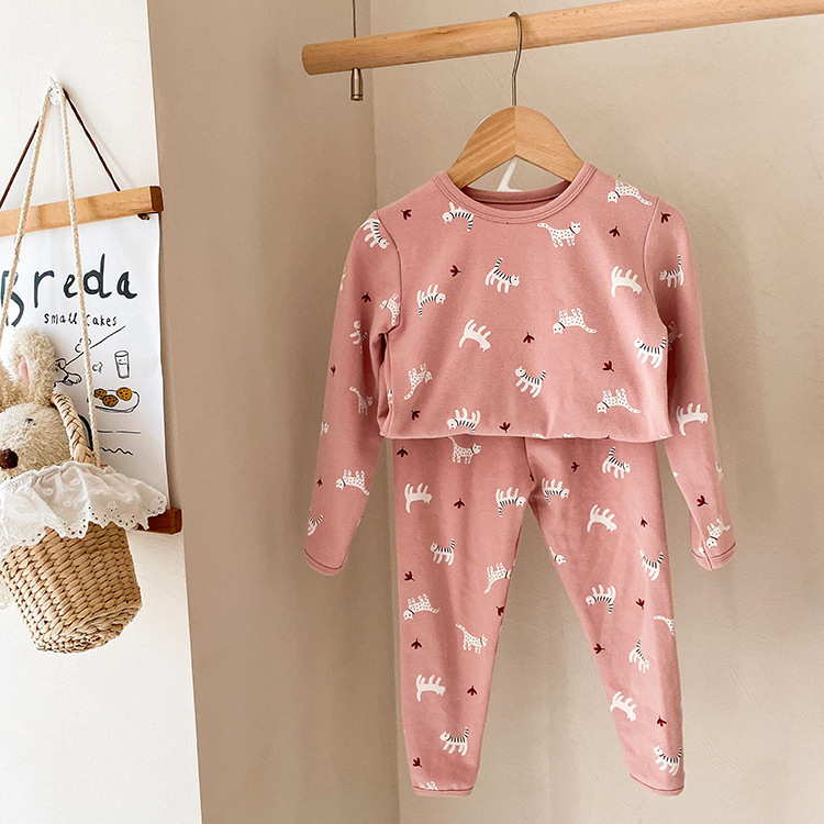 어린이 가을과 겨울 따뜻한 만화 울 풀 랙 소년과 소녀 가정복 아기 속옷 샌딩 잠옷 바지 투피스 세트스토어 가기