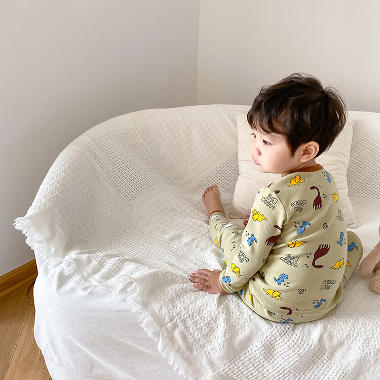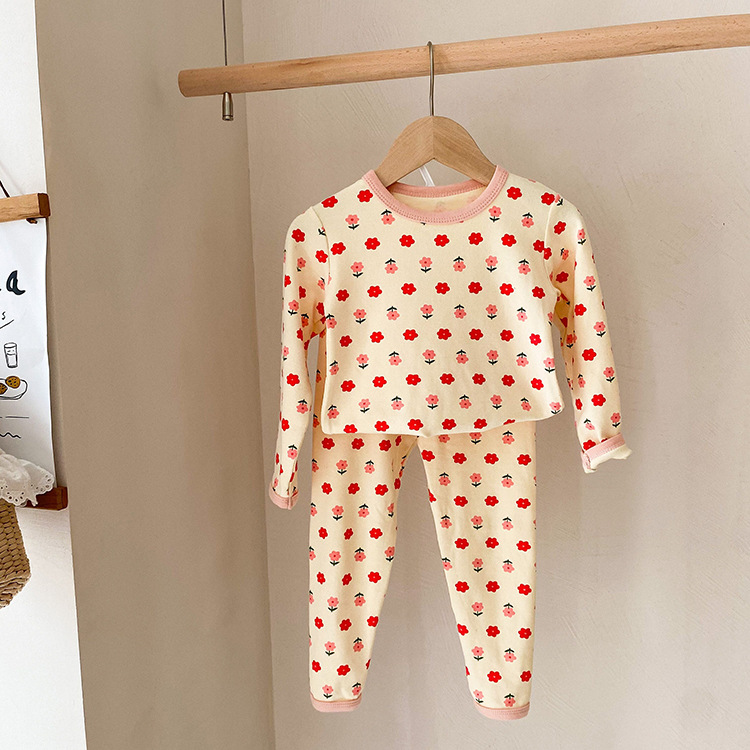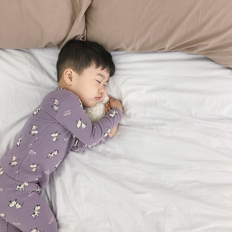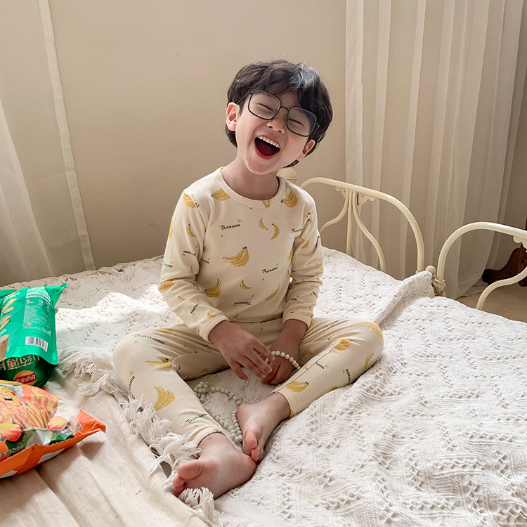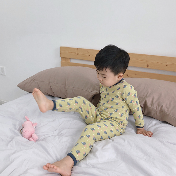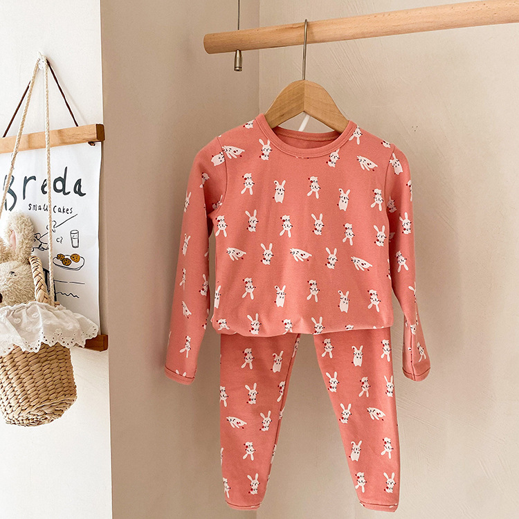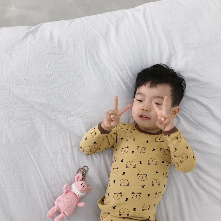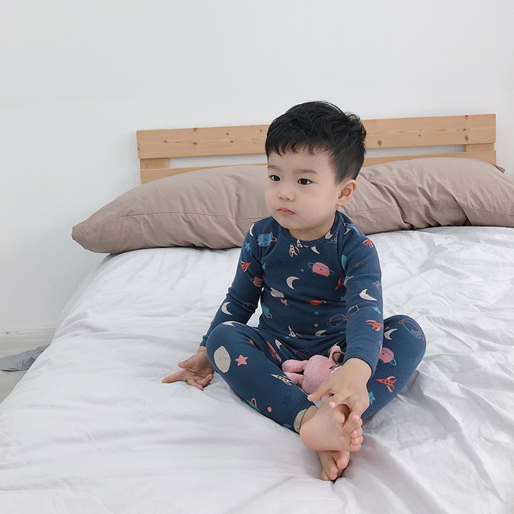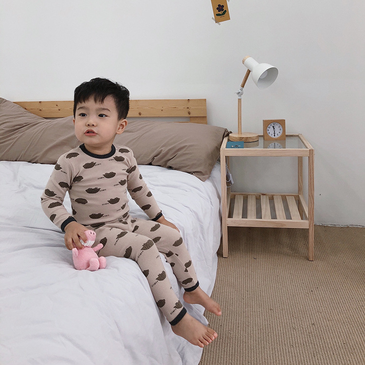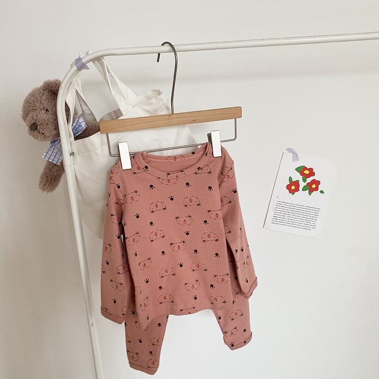 어린이 가을과 겨울 따뜻한 만화 울 풀 랙 소년과 소녀 가정복 아기 속옷 샌딩 잠옷 바지 투피스 세트스토어 가기