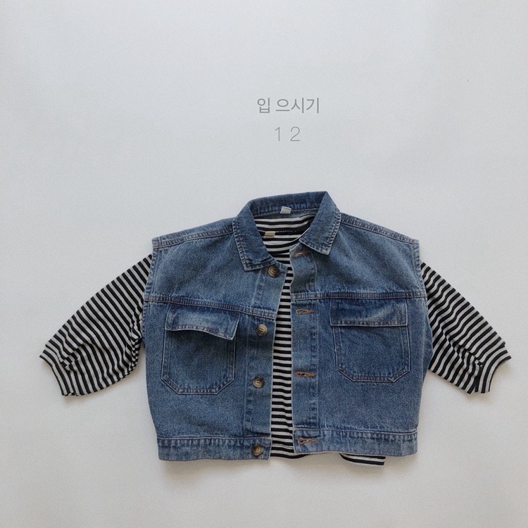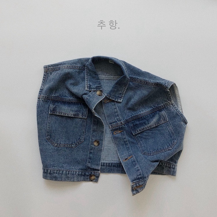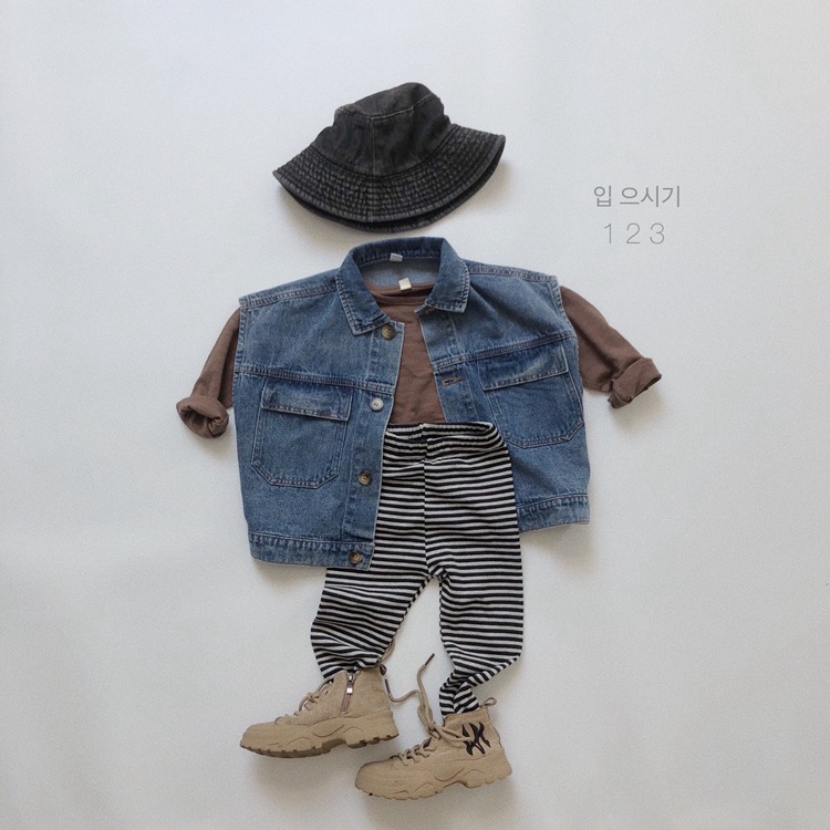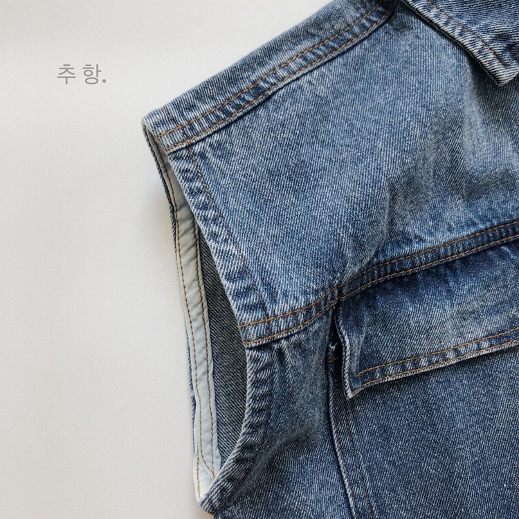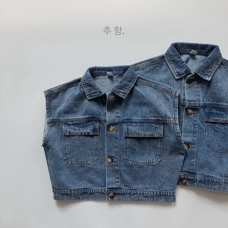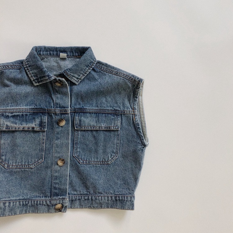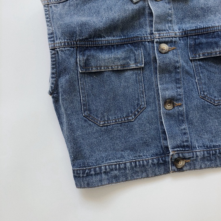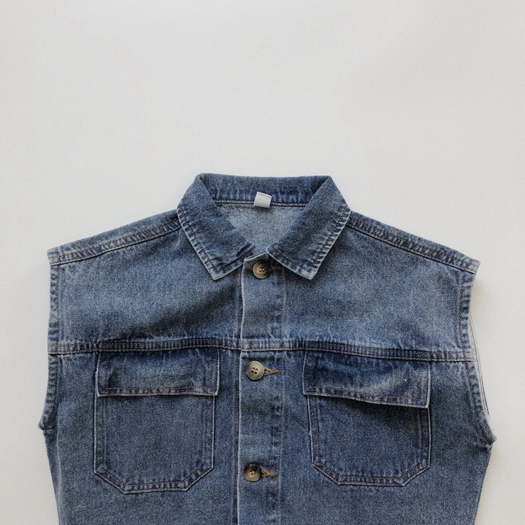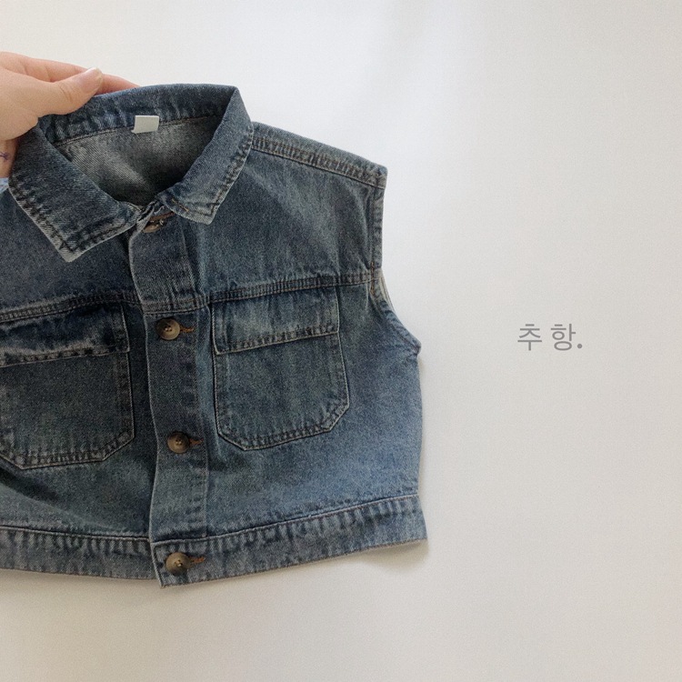한국 아동복 어린이 데님 조끼 가을과 겨울 복고풍 세련된 포켓 워싱 조끼 소년과 소녀를위한 유행스토어 가기