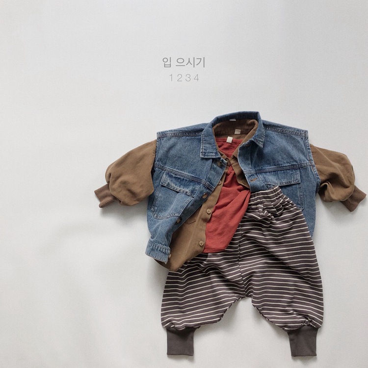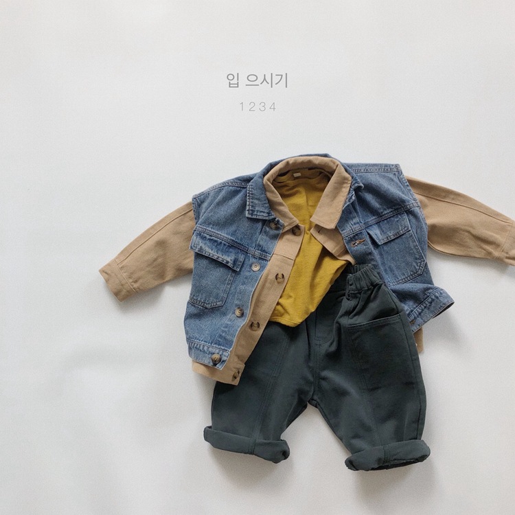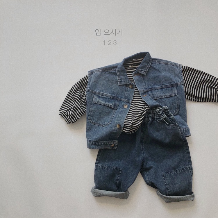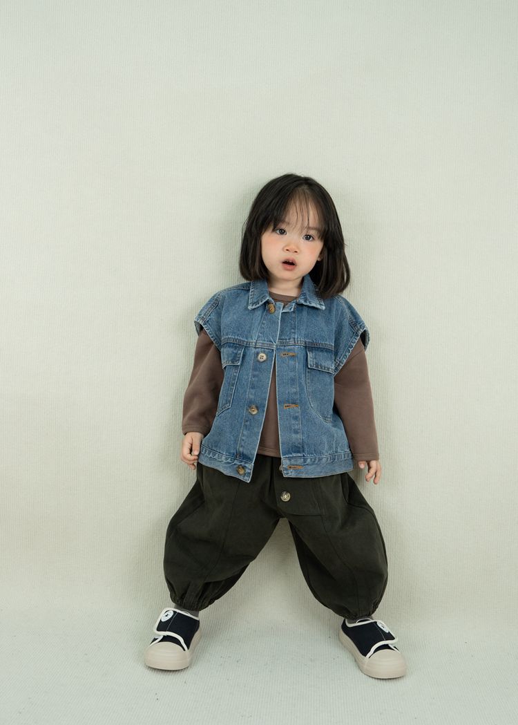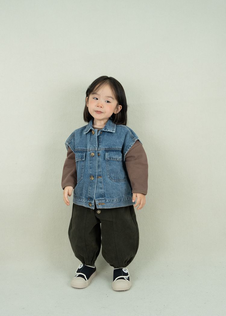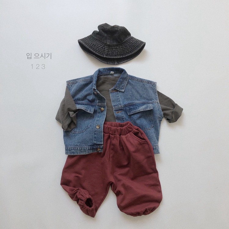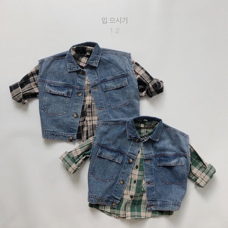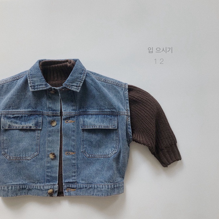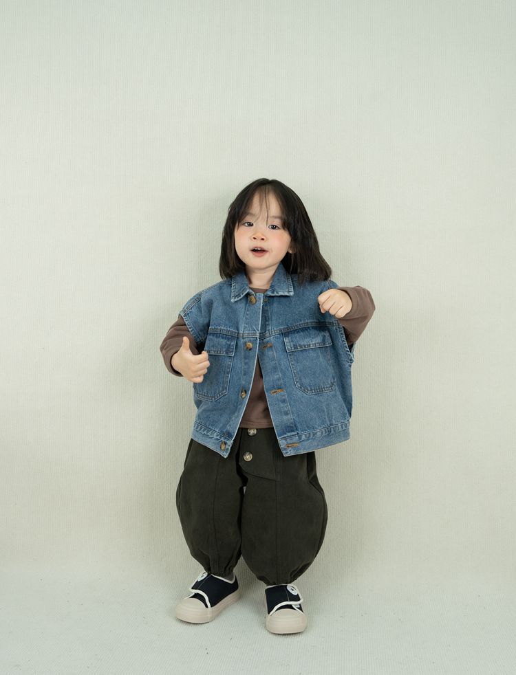 한국 아동복 어린이 데님 조끼 가을과 겨울 복고풍 세련된 포켓 워싱 조끼 소년과 소녀를위한 유행스토어 가기