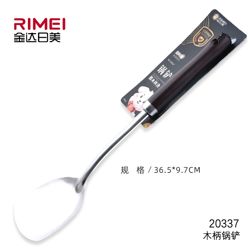 JINDARIIMEI 스테인레스 스틸 비 핫 주걱 주방 가정용 경량 두꺼운 요리 요리 주걱 오크 손잡이스토어 가기