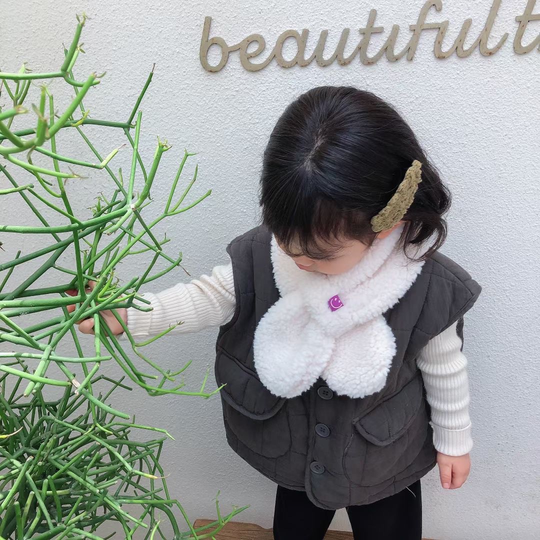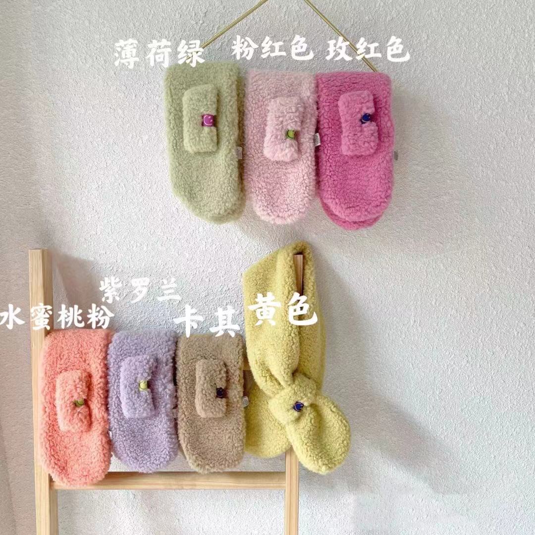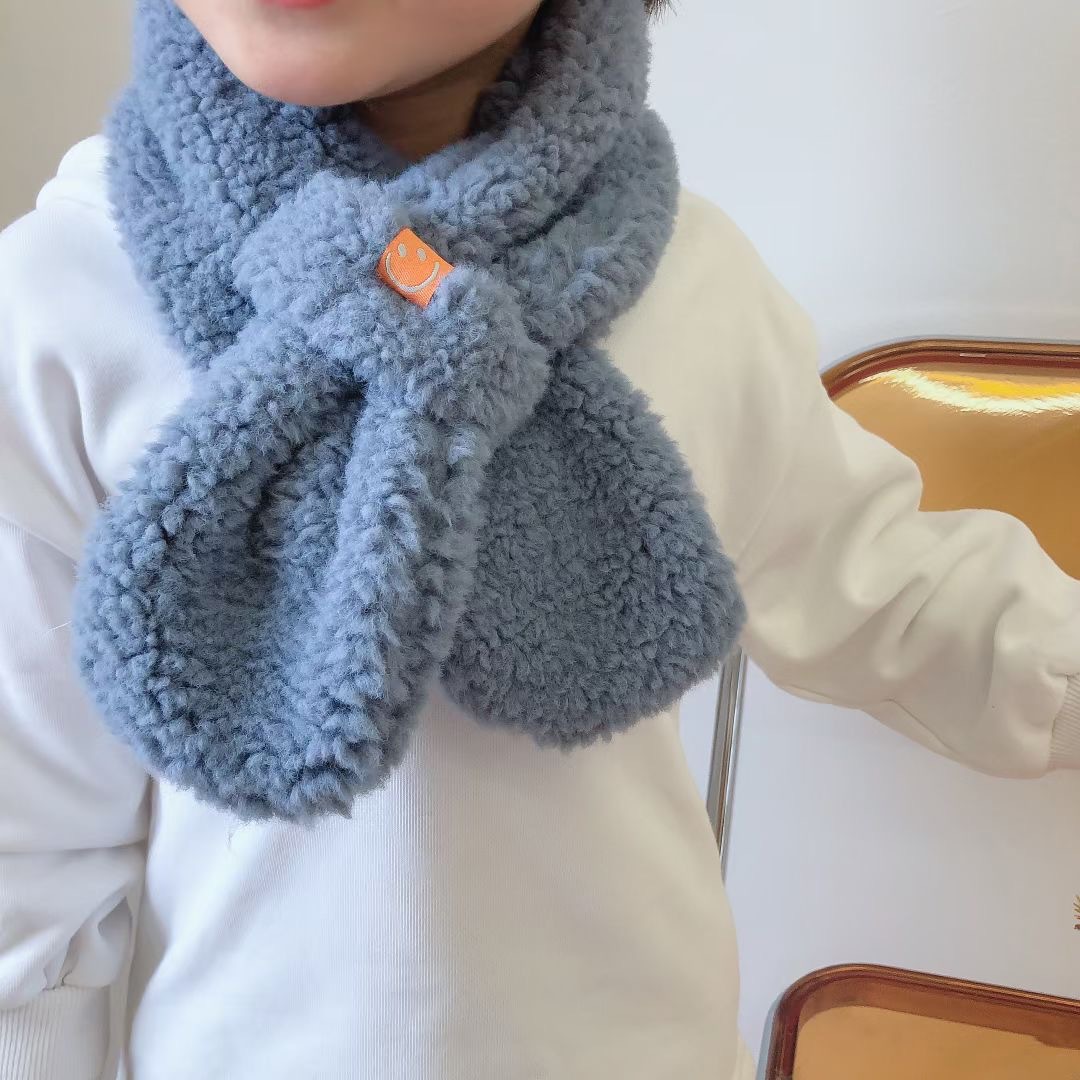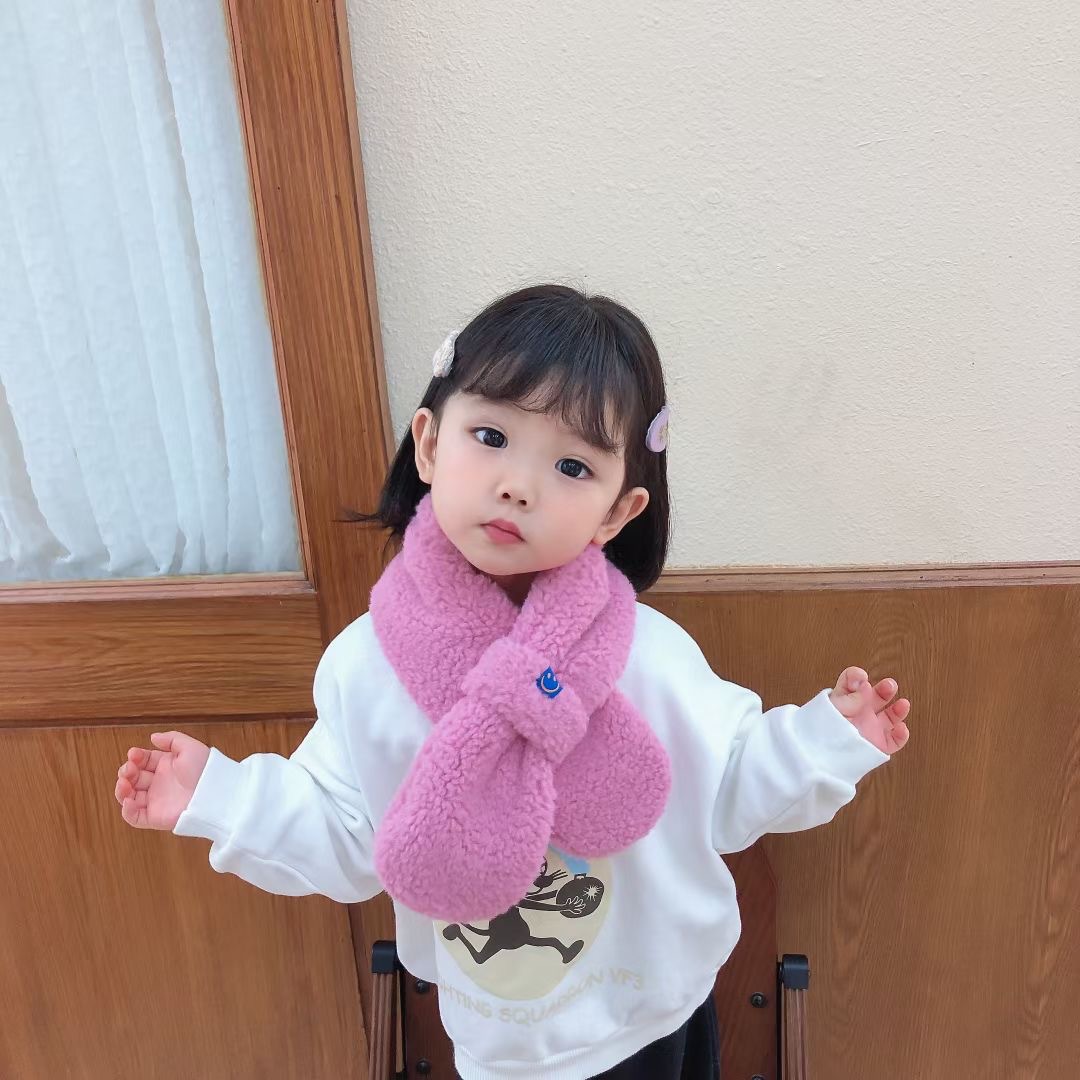 가을, 겨울 새로운 일본어와 한국어 간단한 캔디 컬러 웃는 얼굴 로고 어린이 플러시 스카프 남성과 여성 아기 크로스 따뜻한 스카프스토어 가기