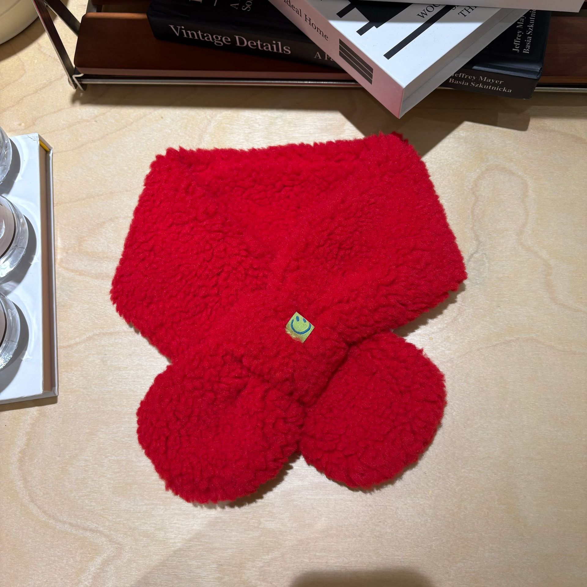 가을, 겨울 새로운 일본어와 한국어 간단한 캔디 컬러 웃는 얼굴 로고 어린이 플러시 스카프 남성과 여성 아기 크로스 따뜻한 스카프