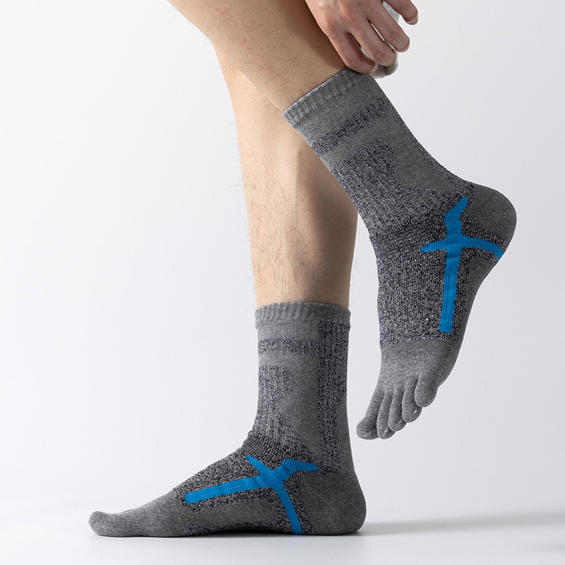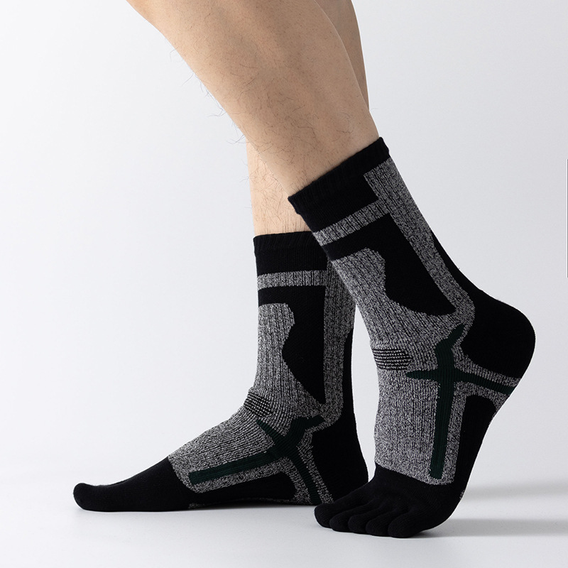 야외 스포츠 다섯 손가락 양말 남성용 높은 배럴 가을과 겨울 따뜻한 발가락 양말 두꺼운 수건 바닥 등산 달리기 스포츠 양말
