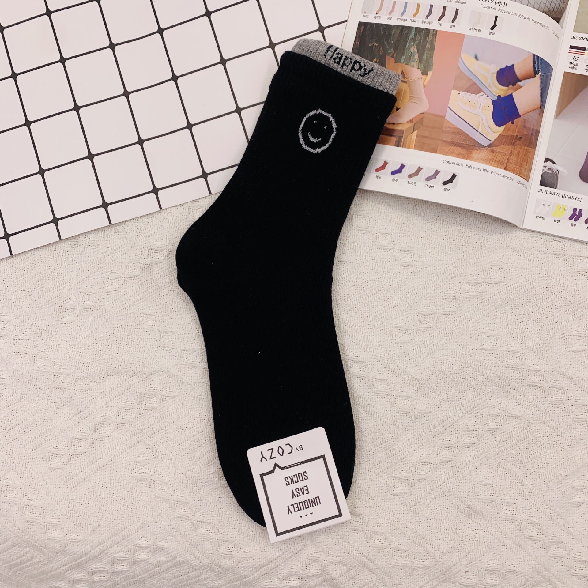 CW431CW023 새 컬러 차단 편지 스마일리 양말 한국 동대문 가을 겨울 여성 양말 여성을위한 한국 스타일