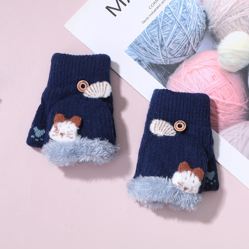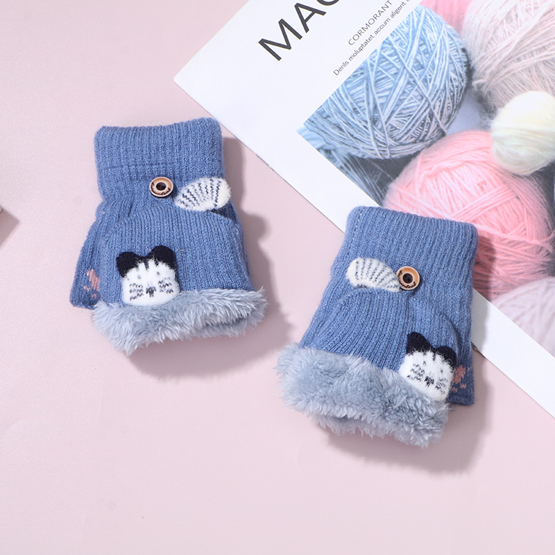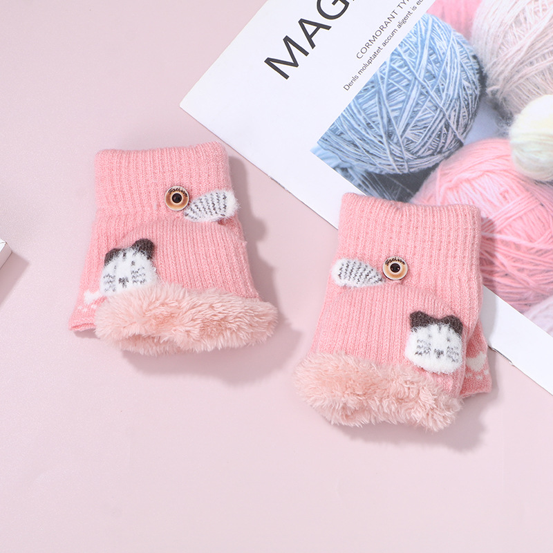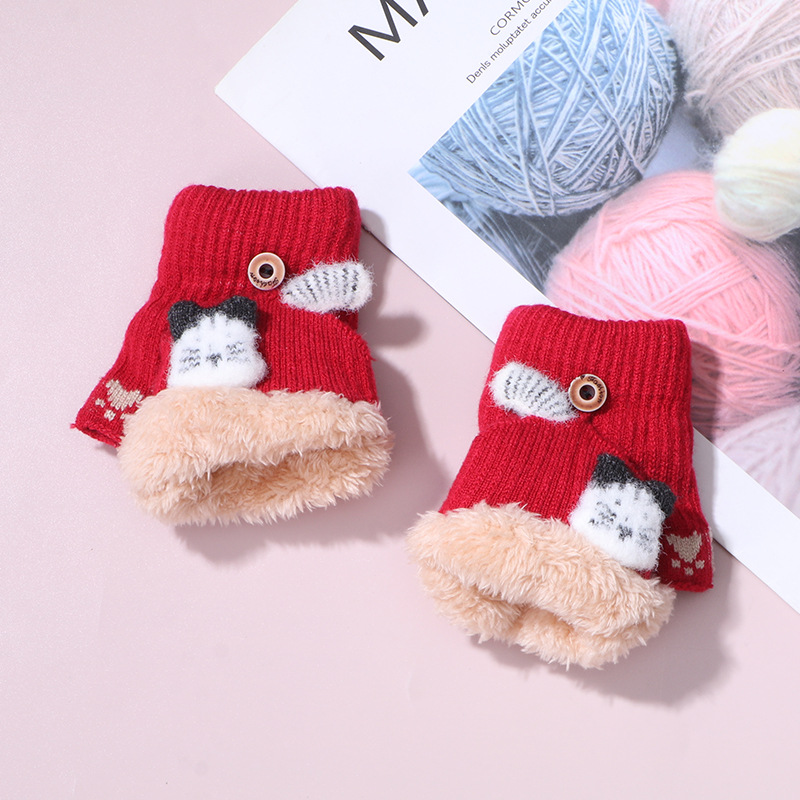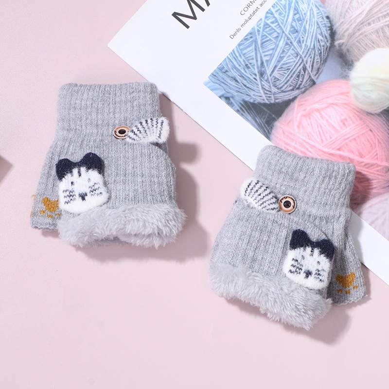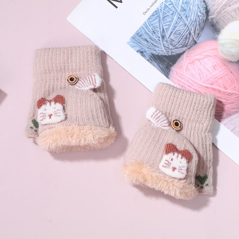 Jiatu 겨울 따뜻한 기모 두꺼운 방한 크리스마스 만화 어린이 반 손가락 플립 순록 장갑 도매