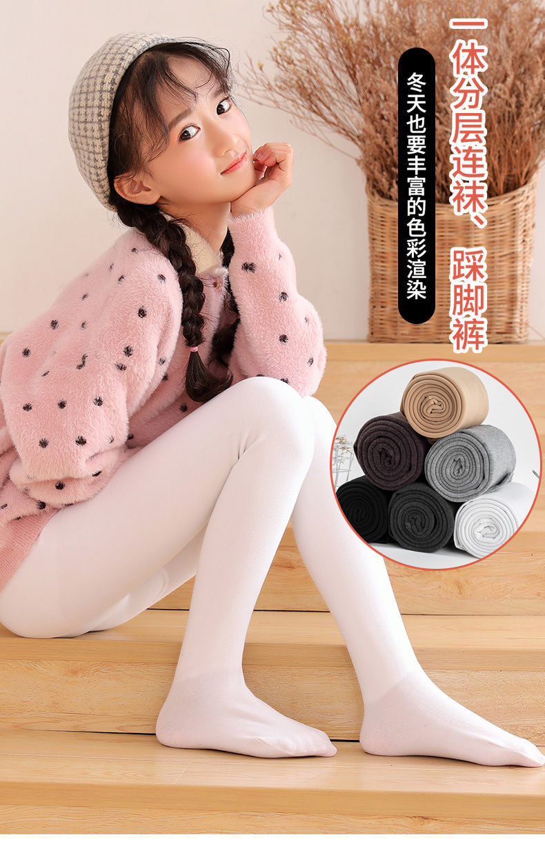 어린이 기모 두꺼운 팬티 스타킹 여아 레깅스 화이트 댄스 양말 가을과 겨울 팬티 스타킹 살색 발