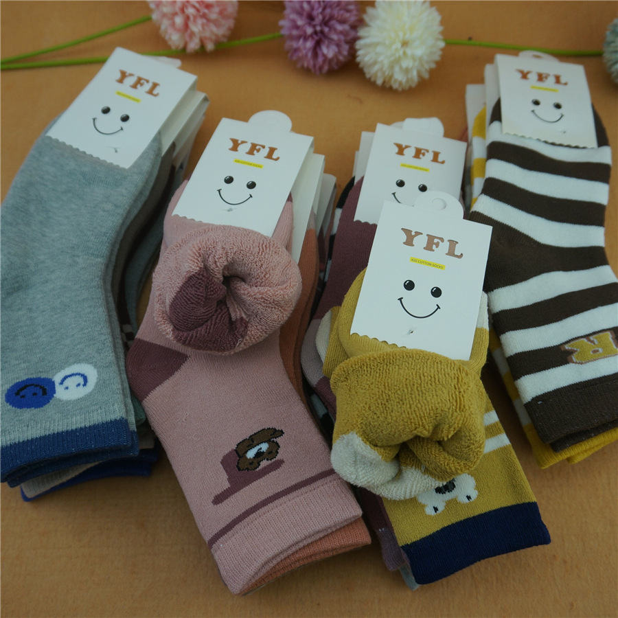 Yan Feilin 새로운 겨울 아기 수건 양말 테리 양말 어린이 따뜻한 아기 학생 양말 도매스토어 가기