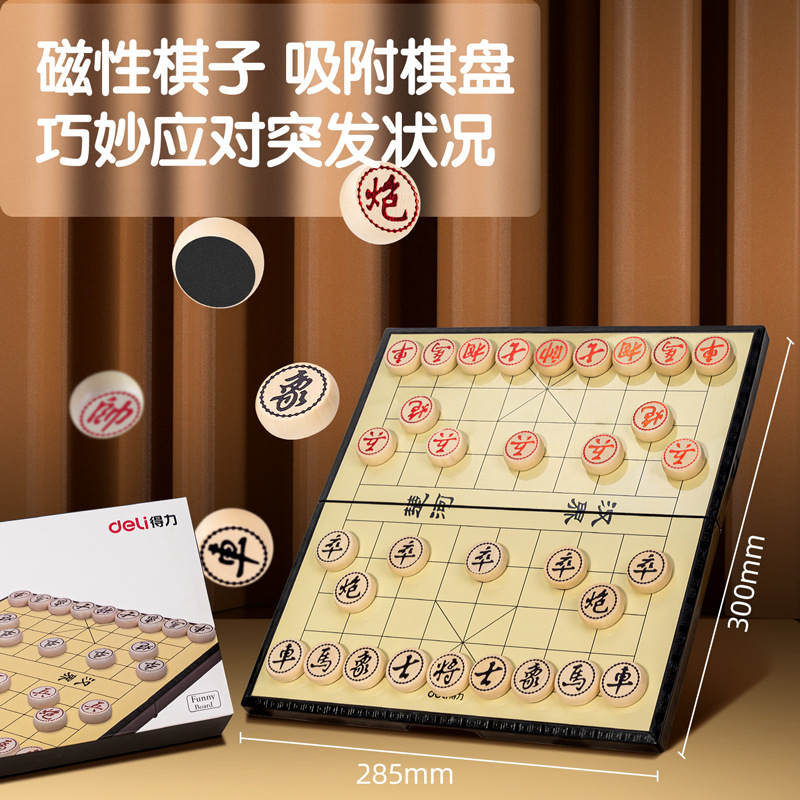 델리 6753 자석 체스 접는 단단한 나무 체스 체스 큰 투명 체스 세트 저장하기 쉬운스토어 가기