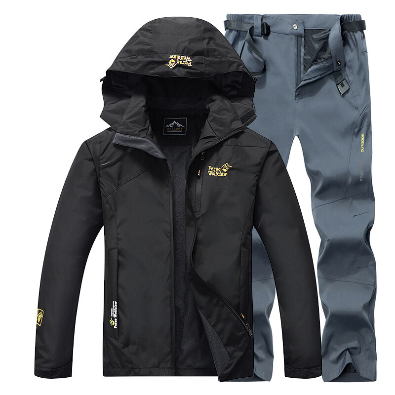 남성용 아웃도어 재킷, 트렌디 브랜드, 봄, 가을 얇은 방풍 재킷, 단층 등산복, 대형 통기성 낚시복 세트
