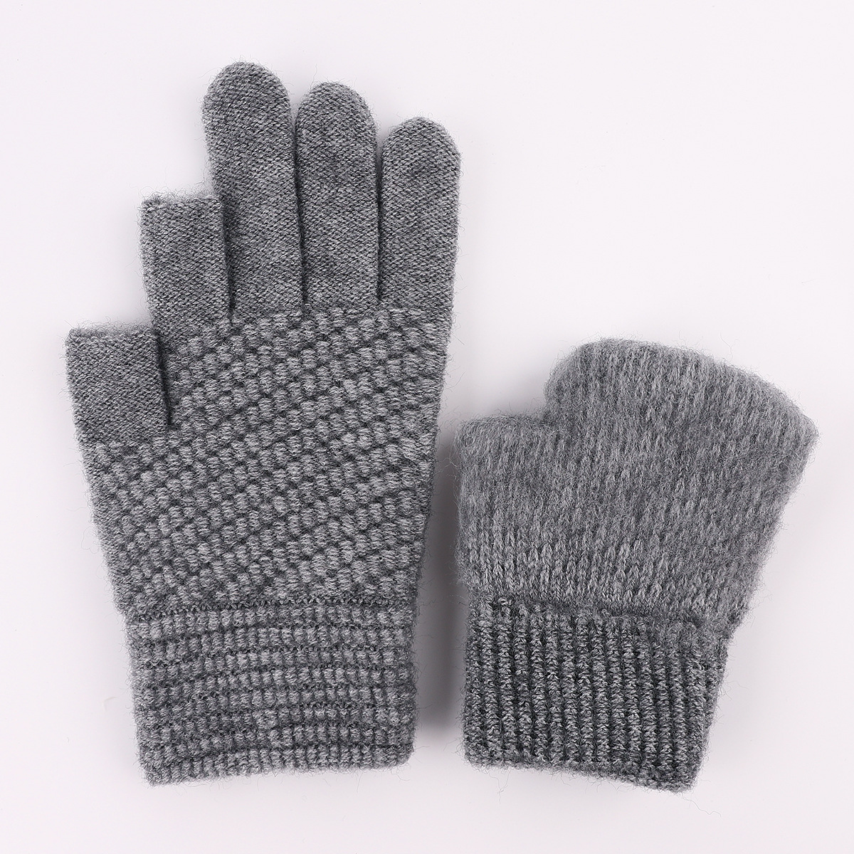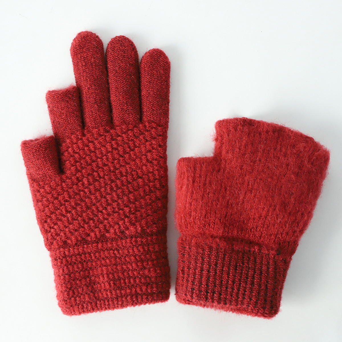 공장 직판 보온 플리스 겨울 장갑 남녀 공용 두 손가락 빠진 뜨개질 장갑 도매