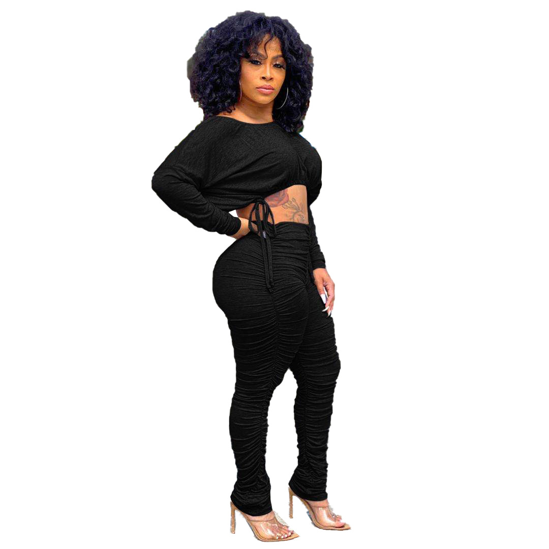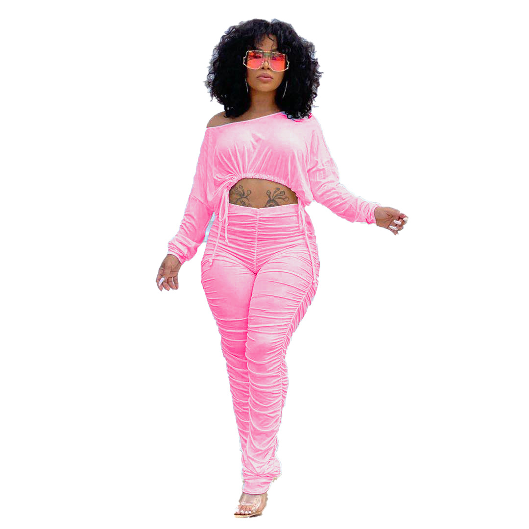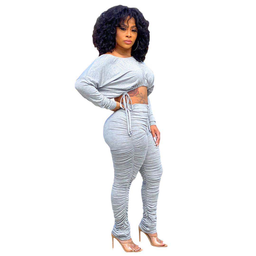 XY9060 아마존 독립 역 폭발 유럽과 미국의 섹시한 여성 세트 슬림 적합 주름 줄넘기 바지 투피스 세트스토어 가기
