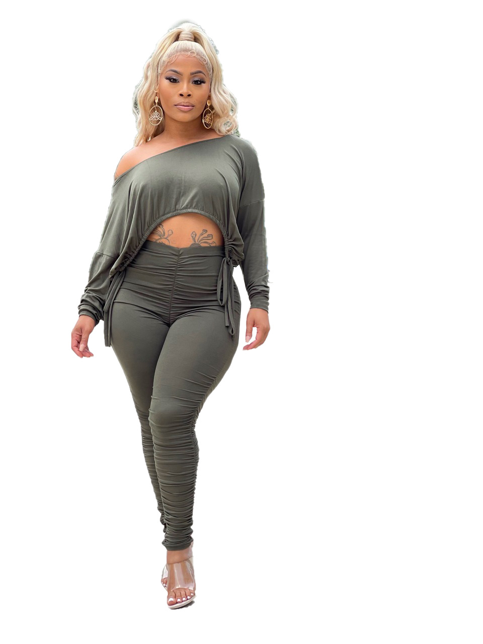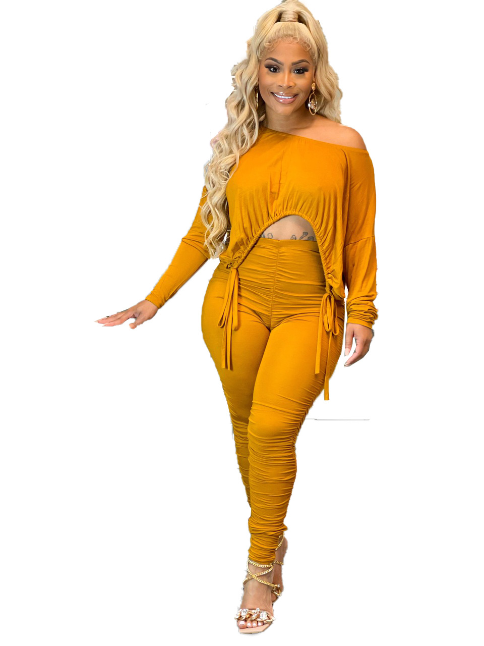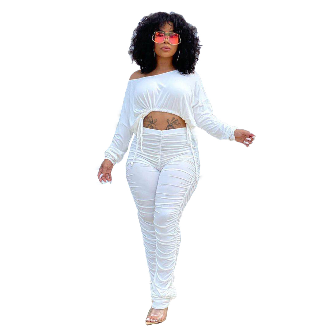 XY9060 아마존 독립 역 폭발 유럽과 미국의 섹시한 여성 세트 슬림 적합 주름 줄넘기 바지 투피스 세트스토어 가기