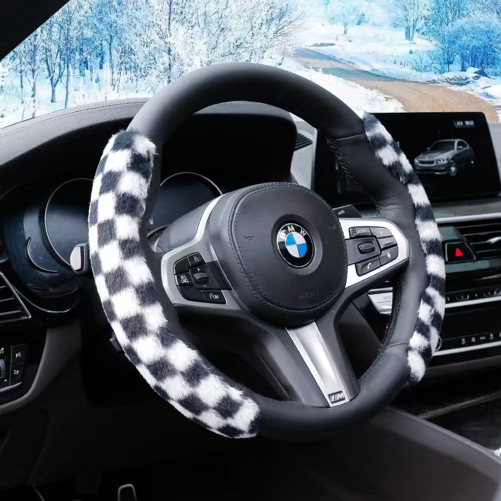 • 새로운 토끼 모피 스티어링 휠 커버 블랙 + 화이트