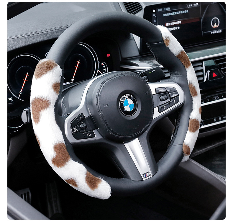 • 새로운 토끼 모피 스티어링 휠 커버 스노우 레오파드 무늬