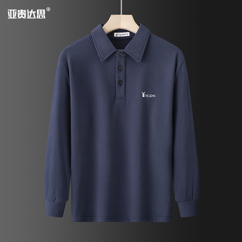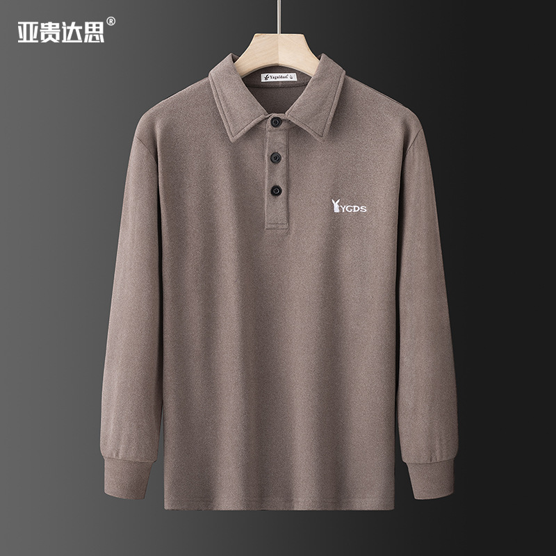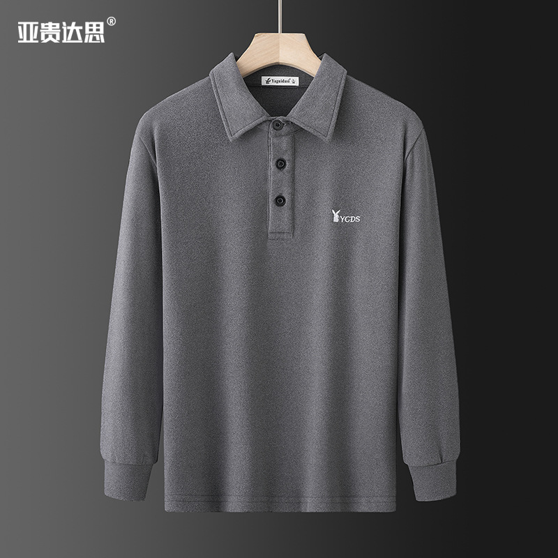 양면 벨벳 긴팔 티셔츠 남성용 라펠 이너베이스 셔츠 새로운 중년 아빠 가을 탑 폴로 셔츠
