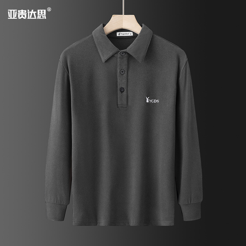 양면 벨벳 긴팔 티셔츠 남성용 라펠 이너베이스 셔츠 새로운 중년 아빠 가을 탑 폴로 셔츠스토어 가기