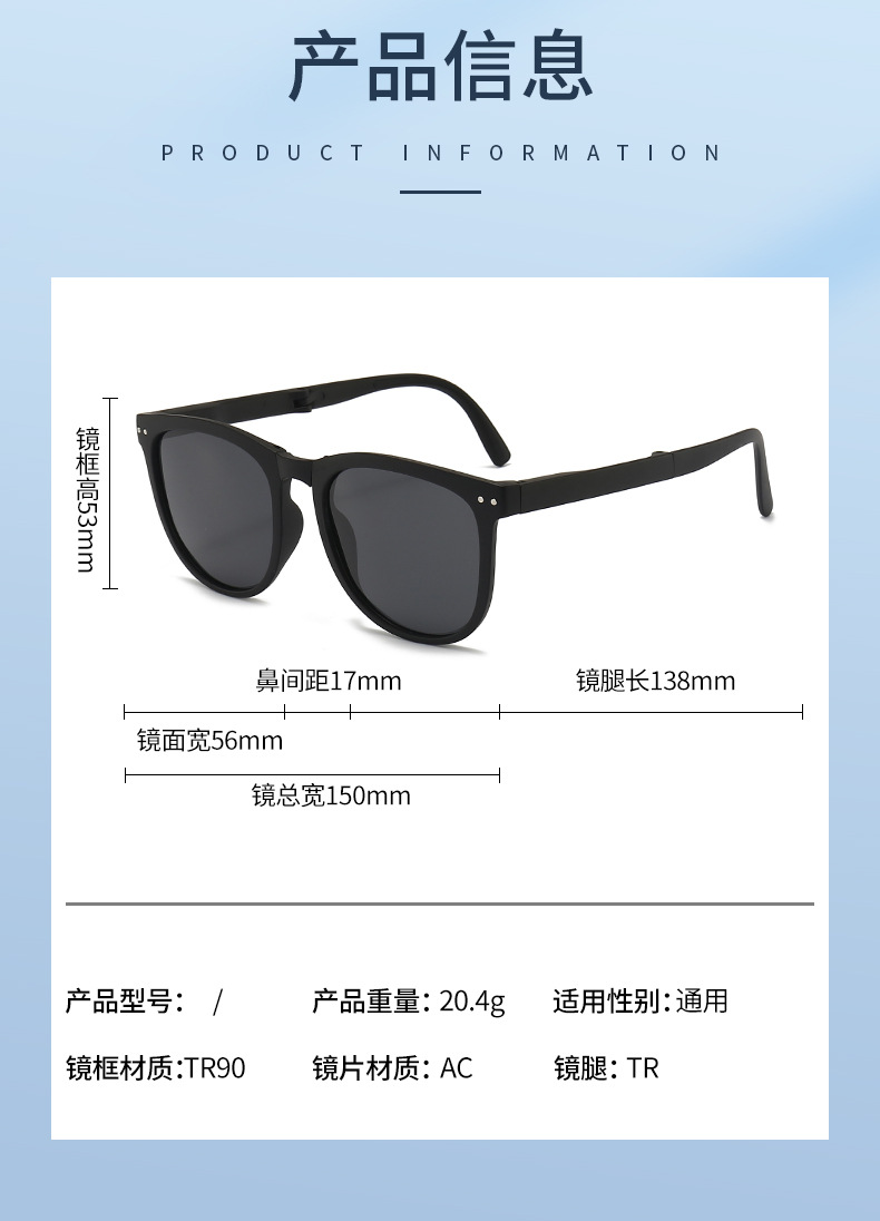 새로운 접이식 선글라스 여성용 인터넷 연예인 편광 선글라스 패션 2 세대 접이식 안경 코 패드 도매