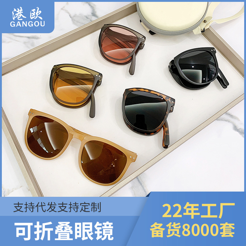 새로운 접이식 선글라스 여성용 인터넷 연예인 편광 선글라스 패션 2 세대 접이식 안경 코 패드 도매스토어 가기