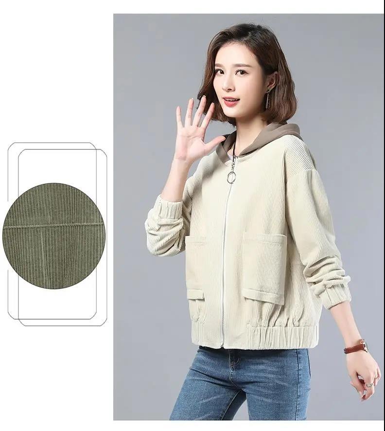 코듀로이 스티치 후드 짧은 코트 여성의 느슨한 가을과 겨울 긴 소매 재킷 카디건 크로스 보더 여성의 대외 무역 도매