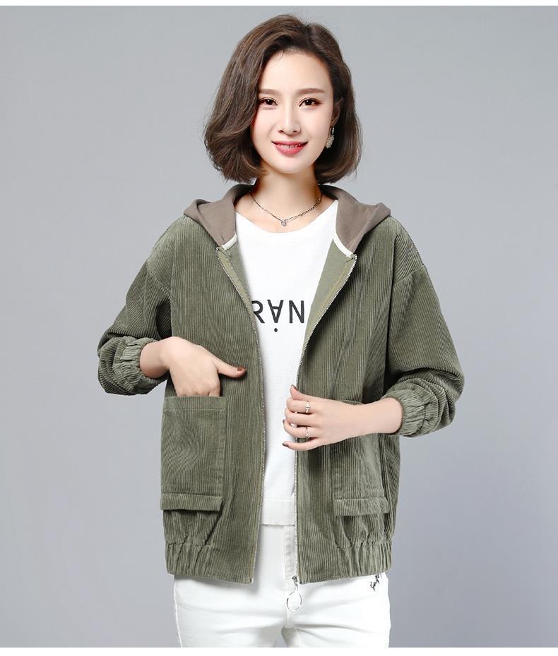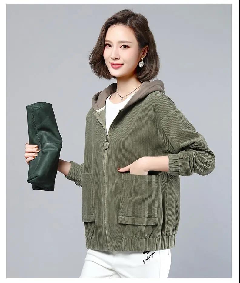 코듀로이 스티치 후드 짧은 코트 여성의 느슨한 가을과 겨울 긴 소매 재킷 카디건 크로스 보더 여성의 대외 무역 도매스토어 가기