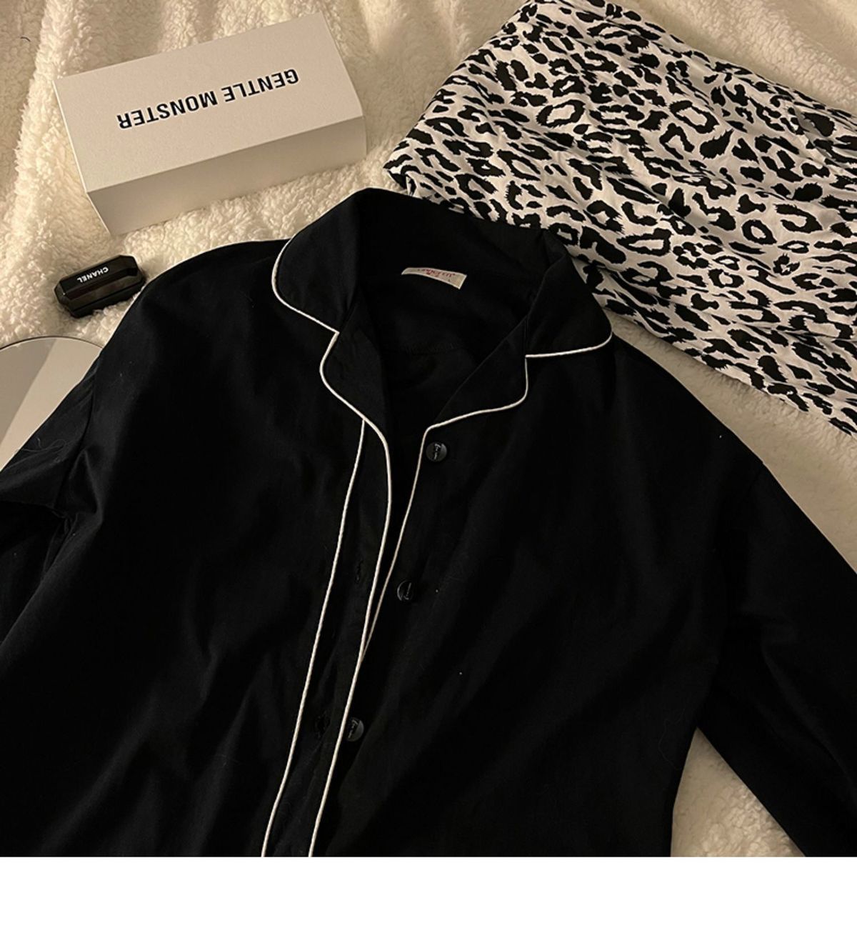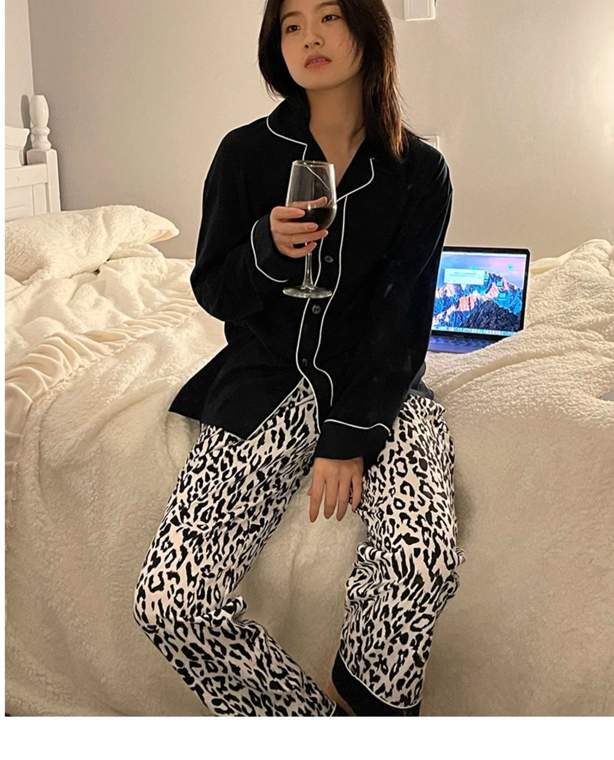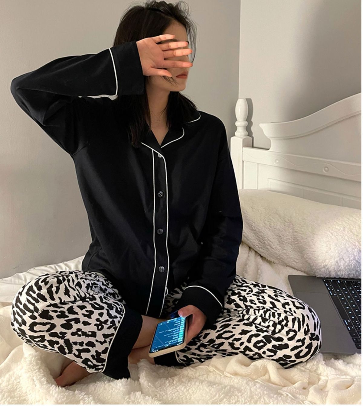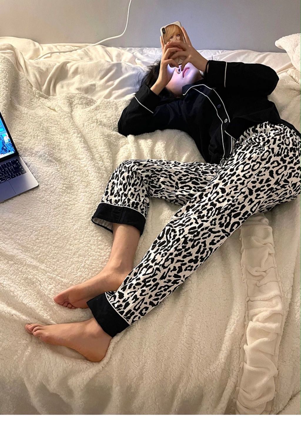 봄과 여름 한국 잠옷 여성 긴 소매 인터넷 인기 블랙 레오파드 카디건 가을과 겨울 홈 얇은 세트 2025스토어 가기