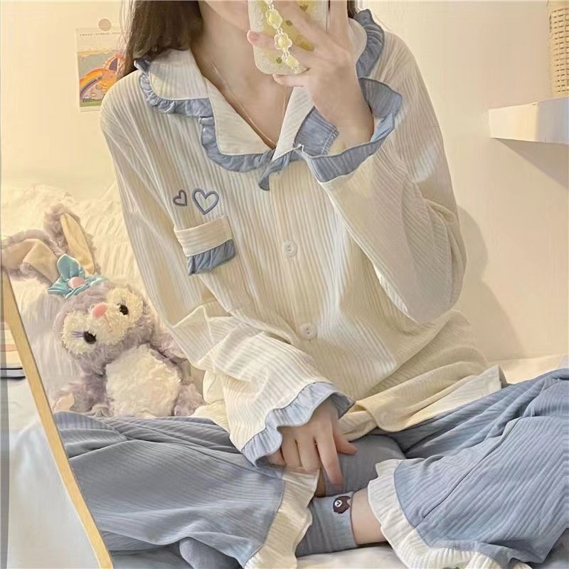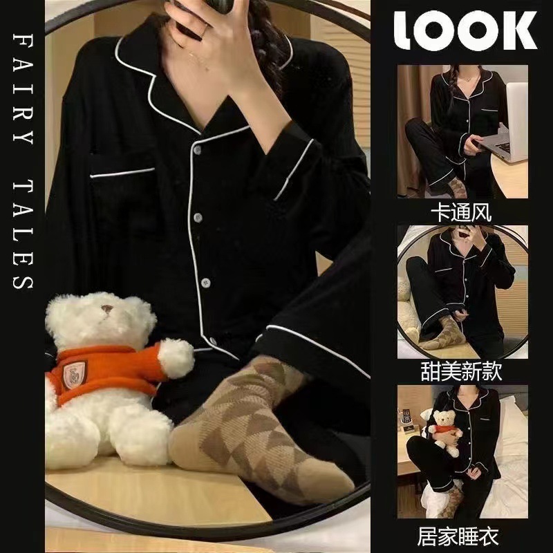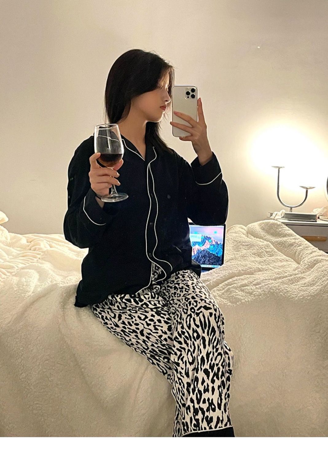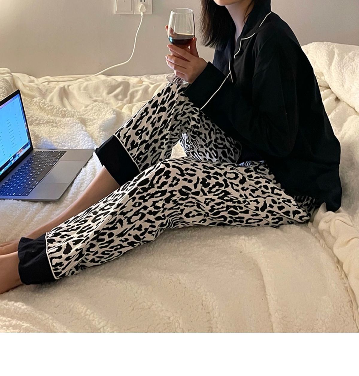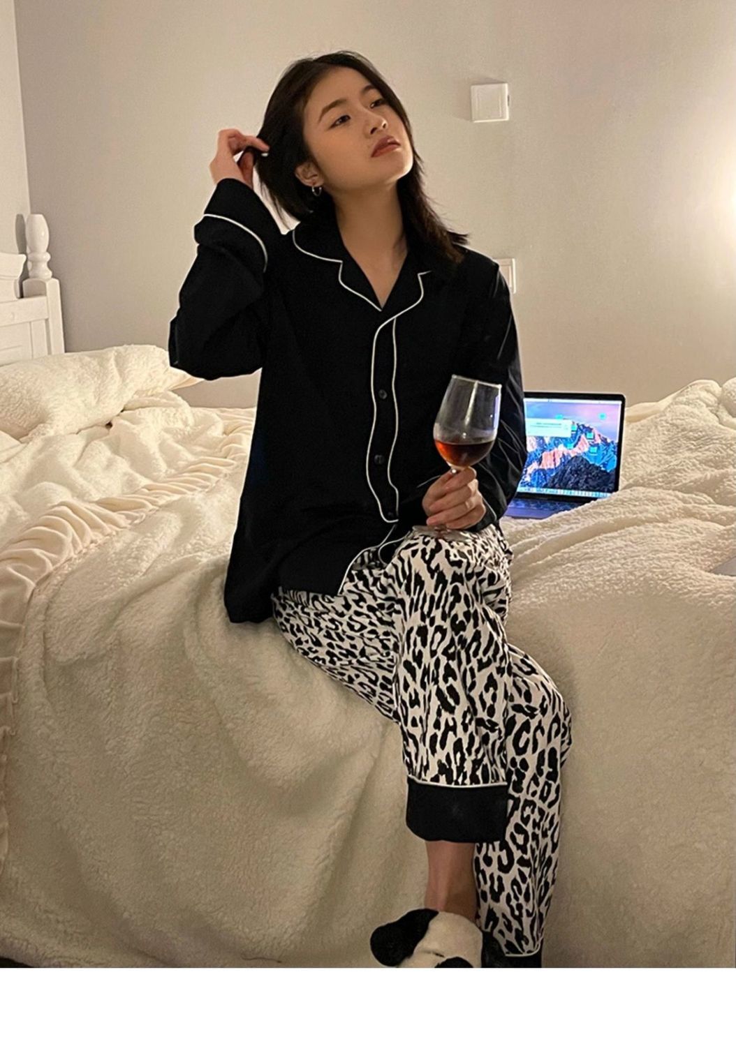 봄과 여름 한국 잠옷 여성 긴 소매 인터넷 인기 블랙 레오파드 카디건 가을과 겨울 홈 얇은 세트 2025스토어 가기