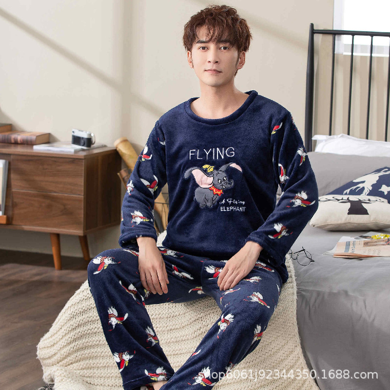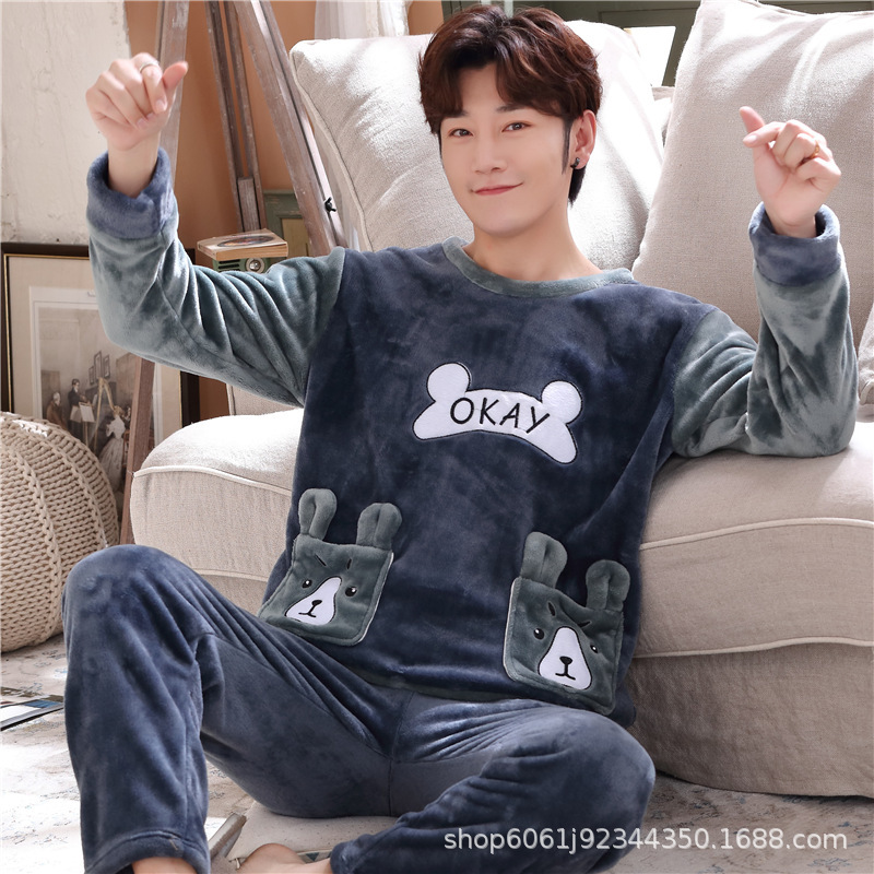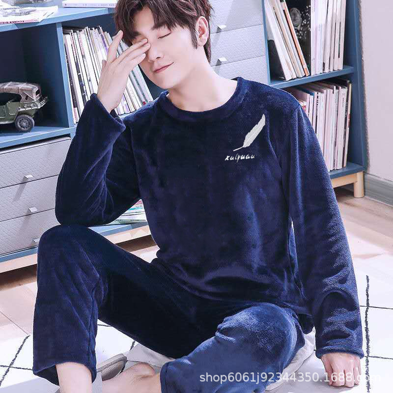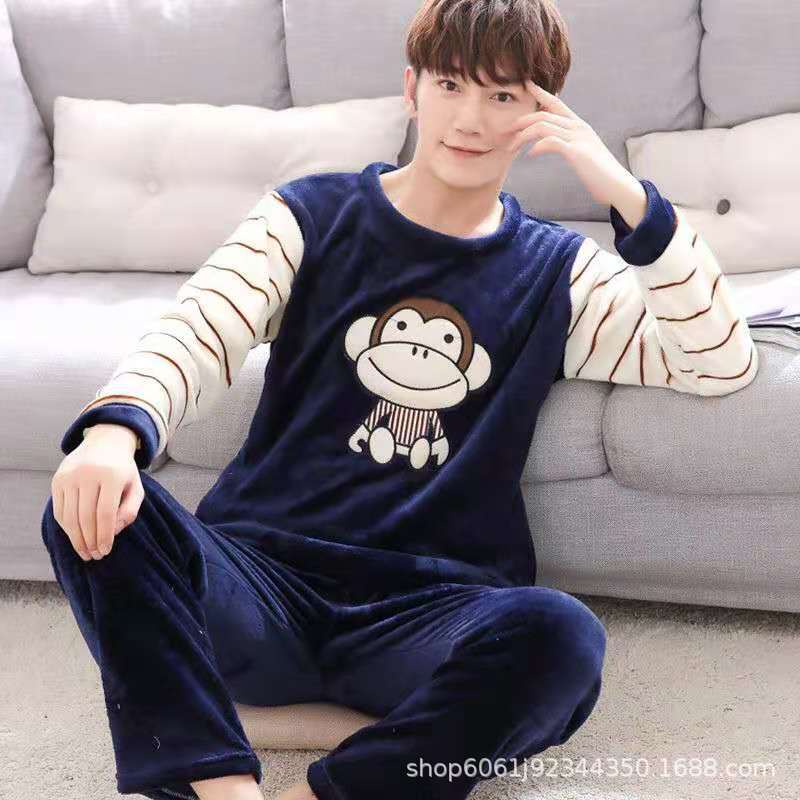 잠옷 남자의 겨울 기모 두꺼운 청소년 플란넬 가을과 겨울 세트 남자의 플러스 사이즈 산호 양털 가정 옷스토어 가기