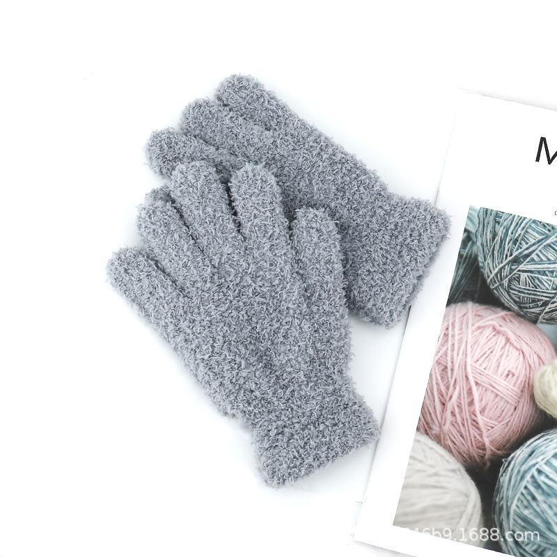 봉제 장갑 남여 공용 단색 반쪽 벨벳 장갑 학생 겨울 따뜻한 기모 두꺼운 니트 장갑