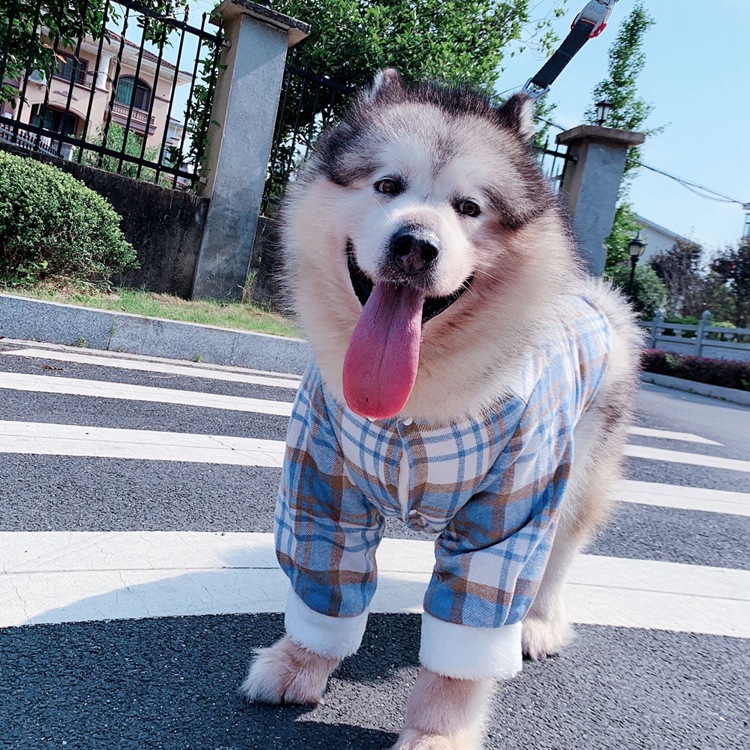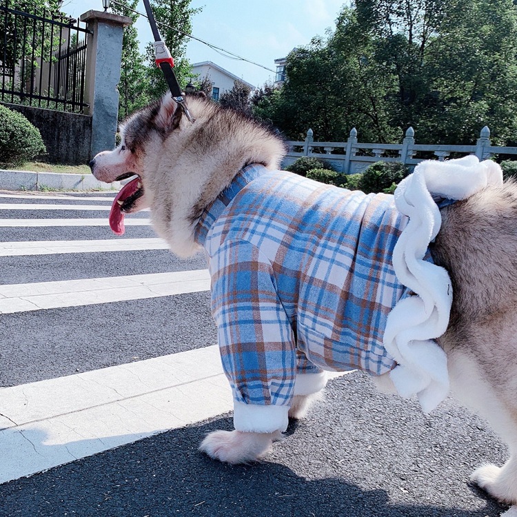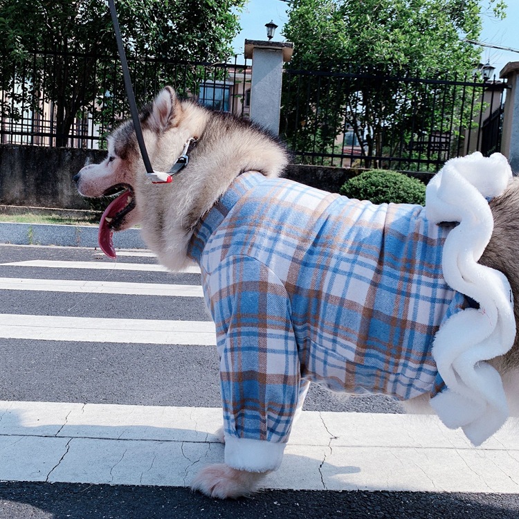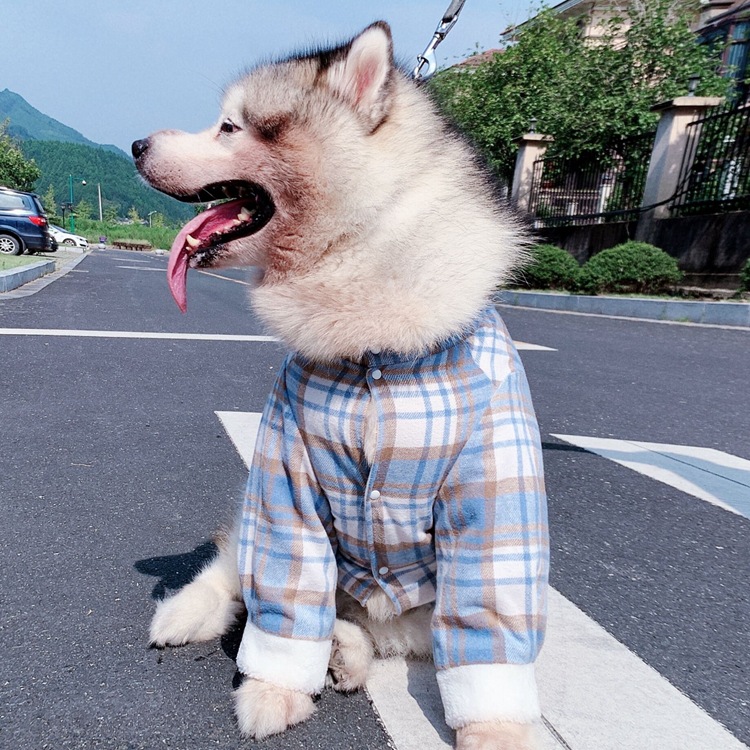 애완 동물 색상 격자 무늬 모직 가을과 겨울 원피스 재킷 더블 레이어 기모 테디 고양이 황금 머리 알래스카