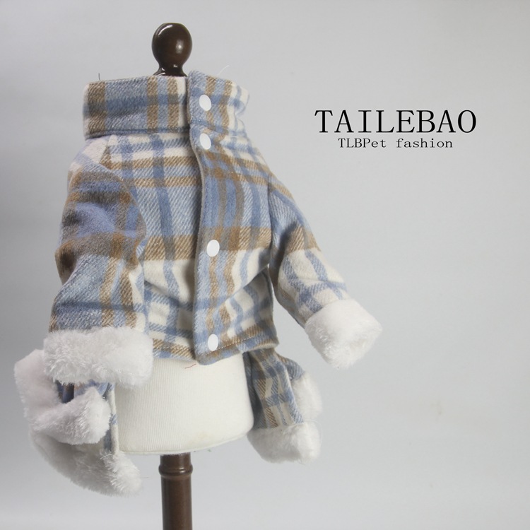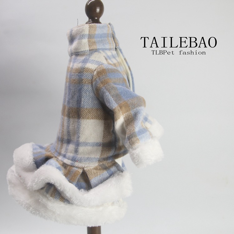 애완 동물 색상 격자 무늬 모직 가을과 겨울 원피스 재킷 더블 레이어 기모 테디 고양이 황금 머리 알래스카스토어 가기