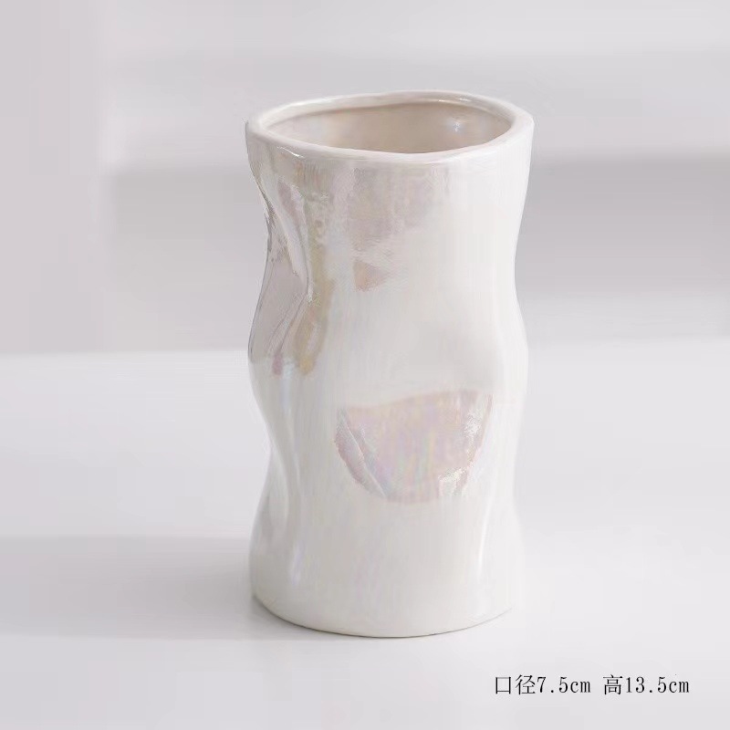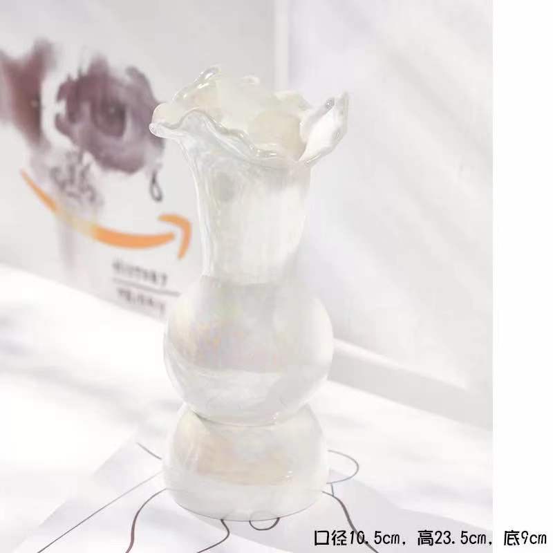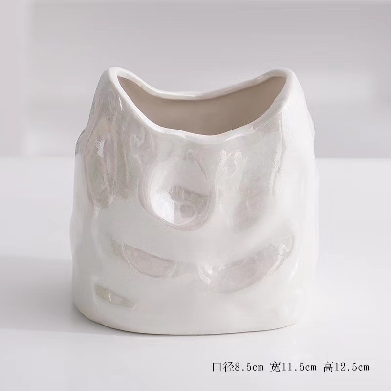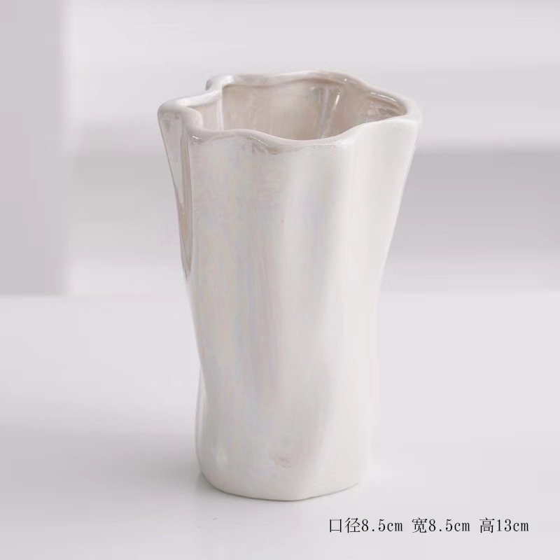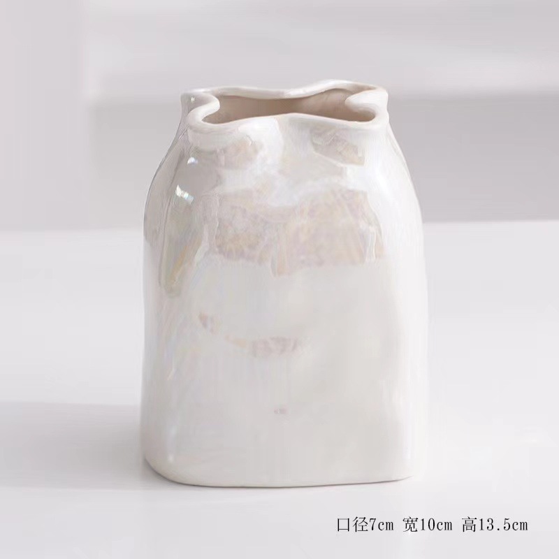 크림 스타일 라이트 럭셔리 Ins 데스크탑 크리 에이 티브 홈 장식 아트 꽃 정렬 장식 행사 판타지 펄 세라믹 꽃병스토어 가기