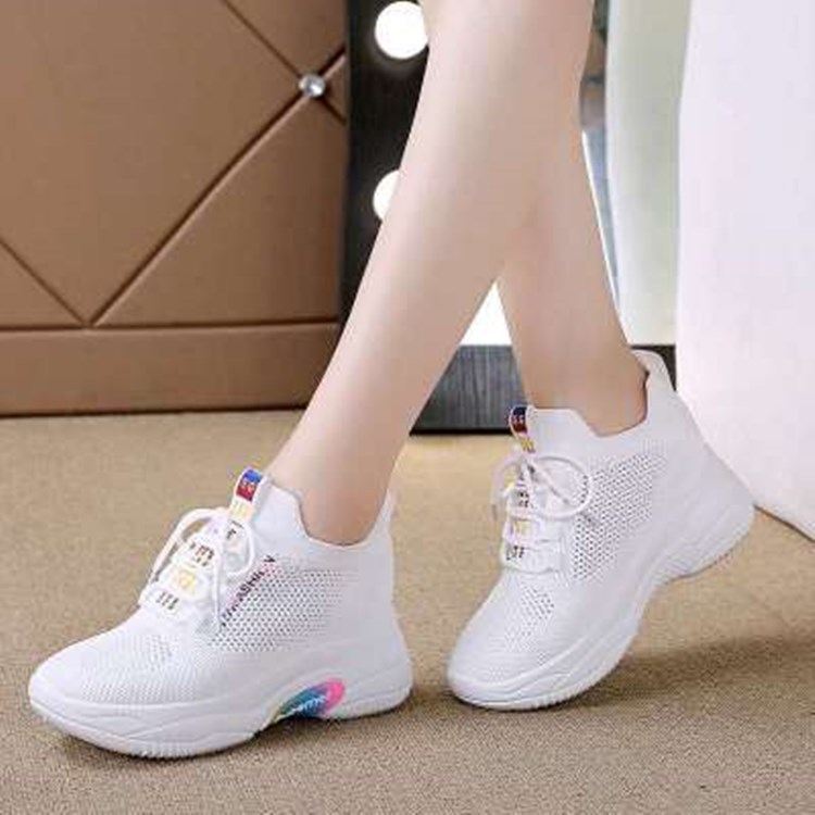 가을 새로운 운동화 비행 직조 통기성 중간 굽 유행 신발 학생 2021 유행 한국 캐주얼 운동화 여성 신발스토어 가기