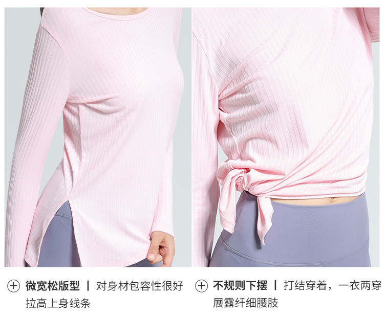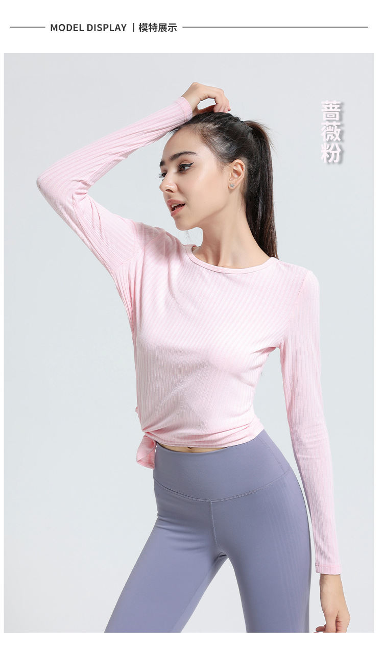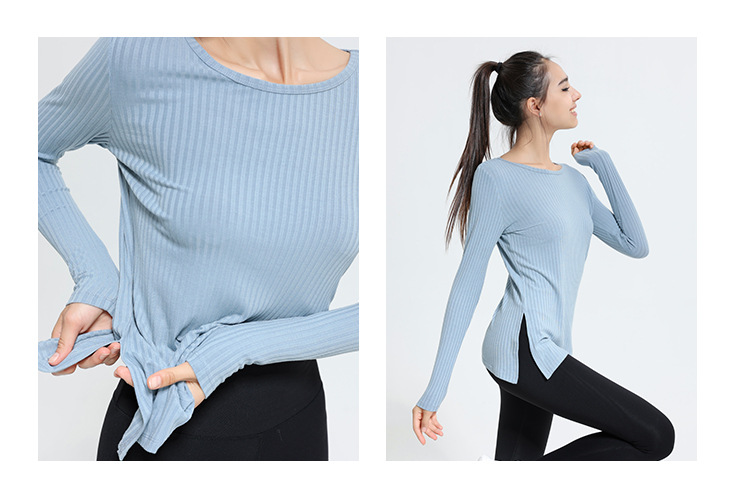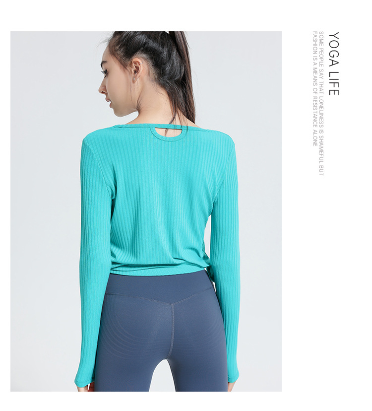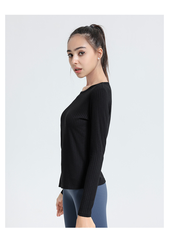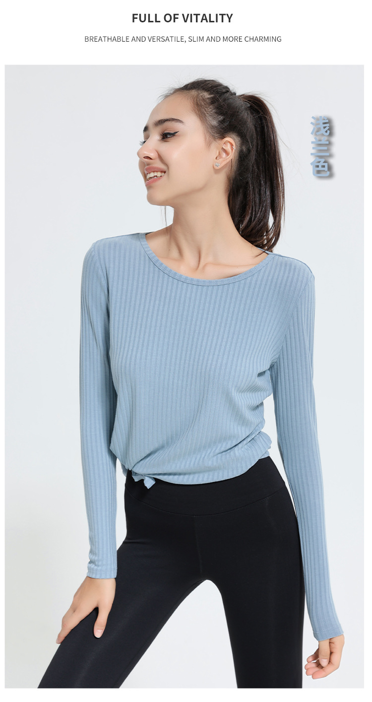 새로운 가을과 겨울 갈비뼈 스포츠 최고 여성의 긴팔 슬림-적합 슬리밍 통기성 둥근 목 소매 요가 달리기 피트니스 세트스토어 가기