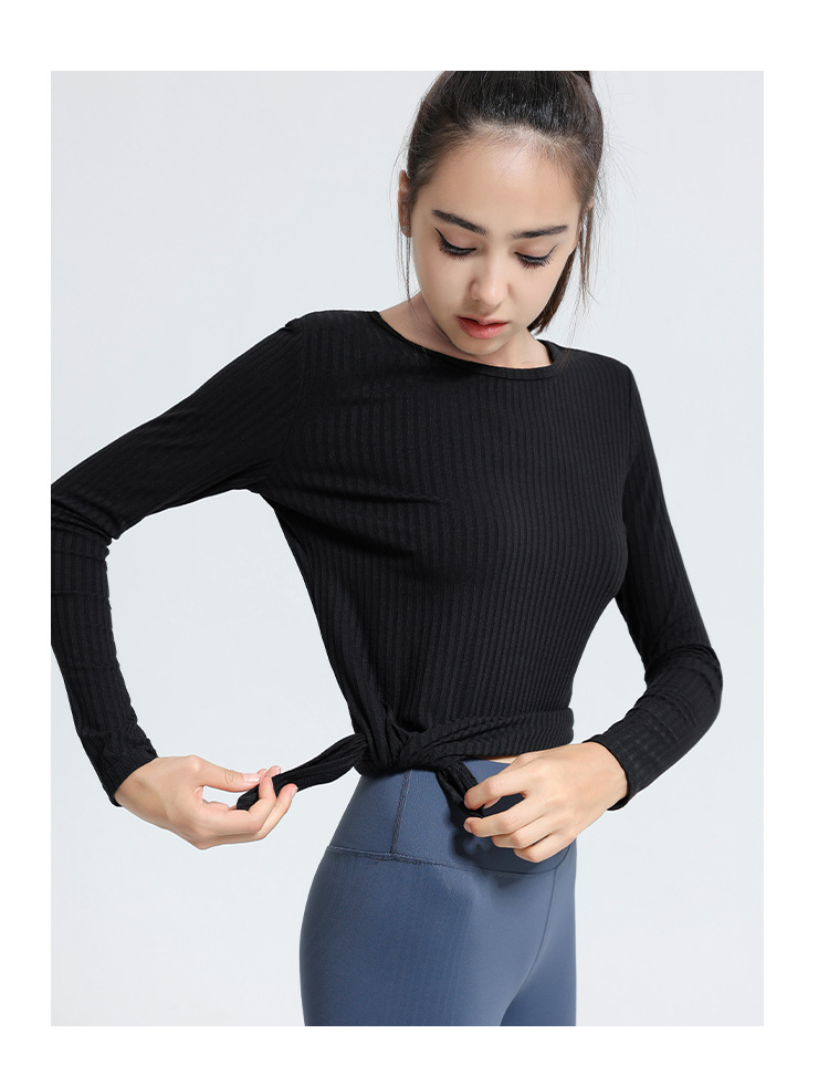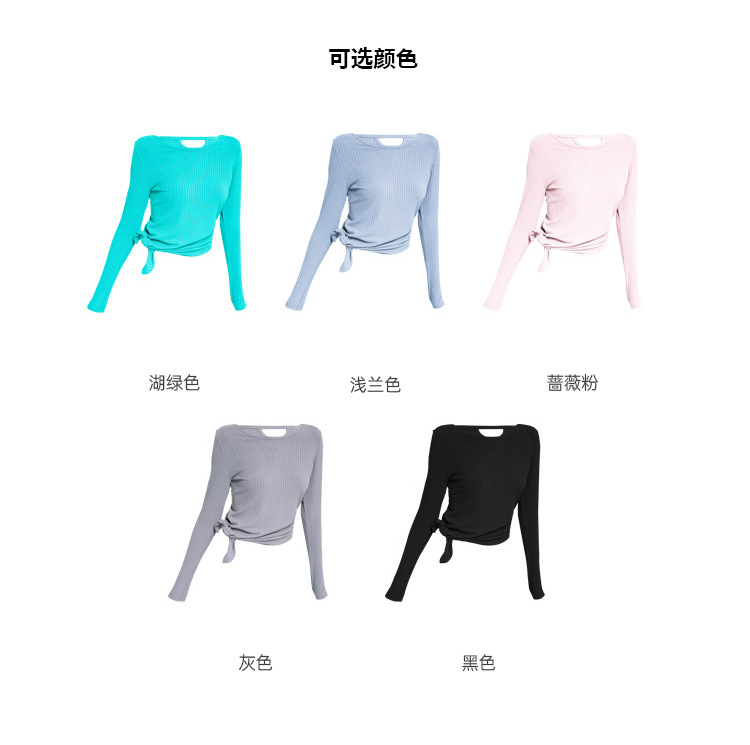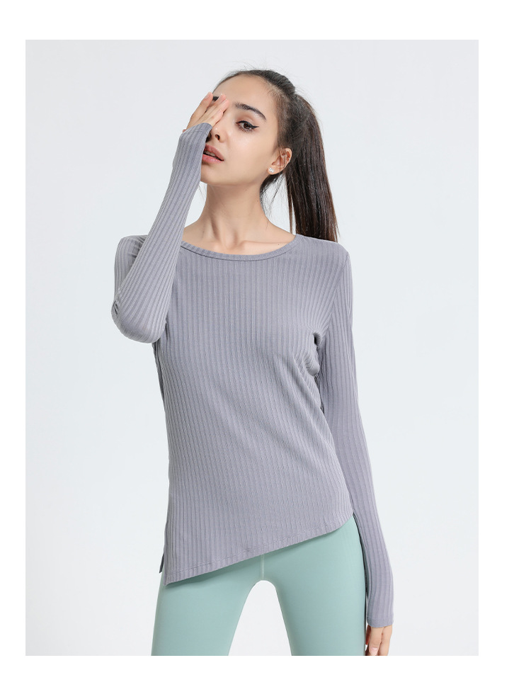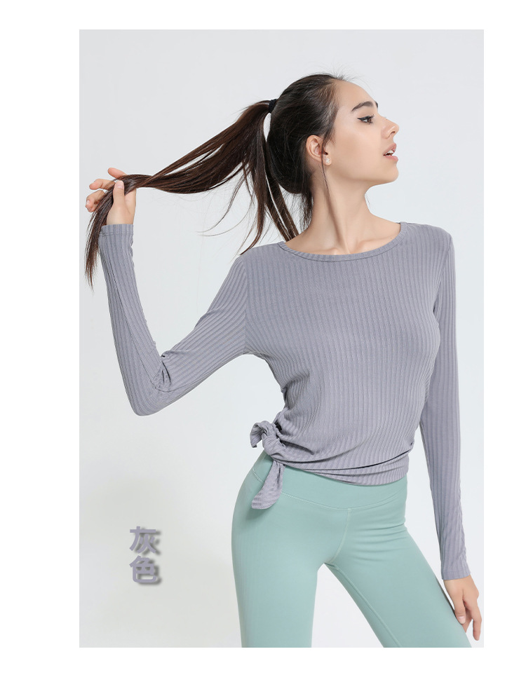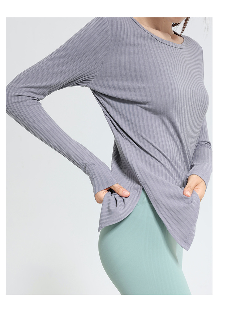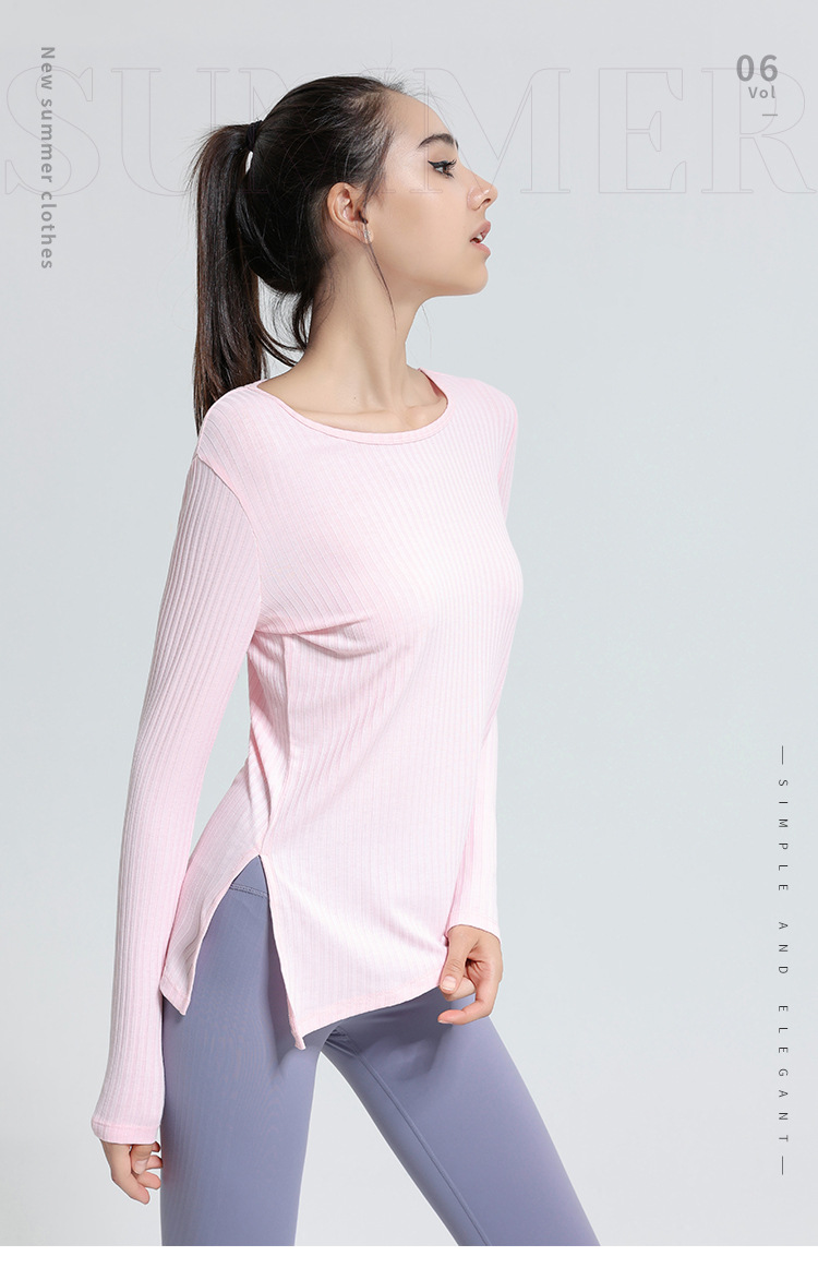 새로운 가을과 겨울 갈비뼈 스포츠 최고 여성의 긴팔 슬림-적합 슬리밍 통기성 둥근 목 소매 요가 달리기 피트니스 세트스토어 가기