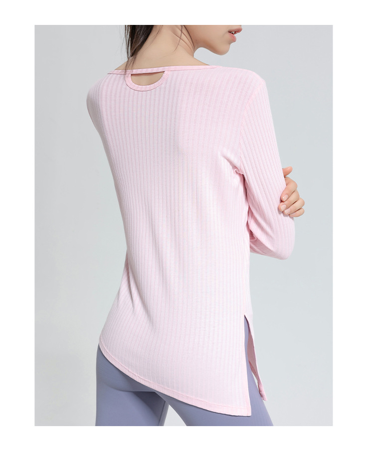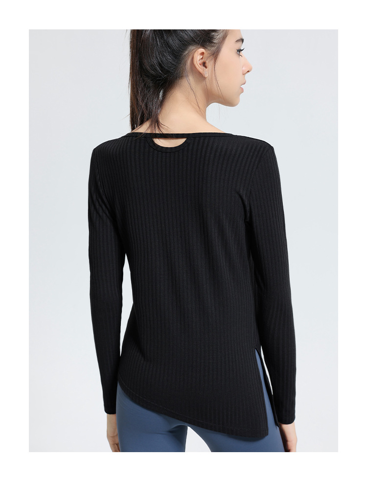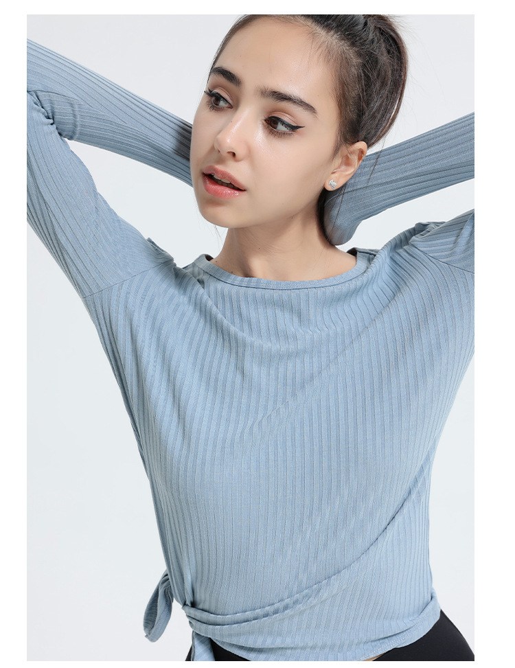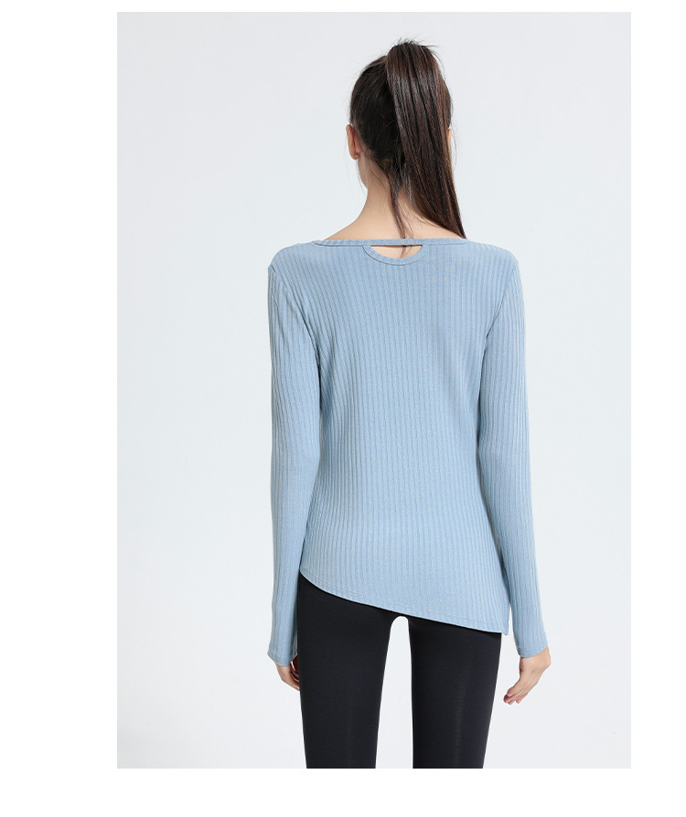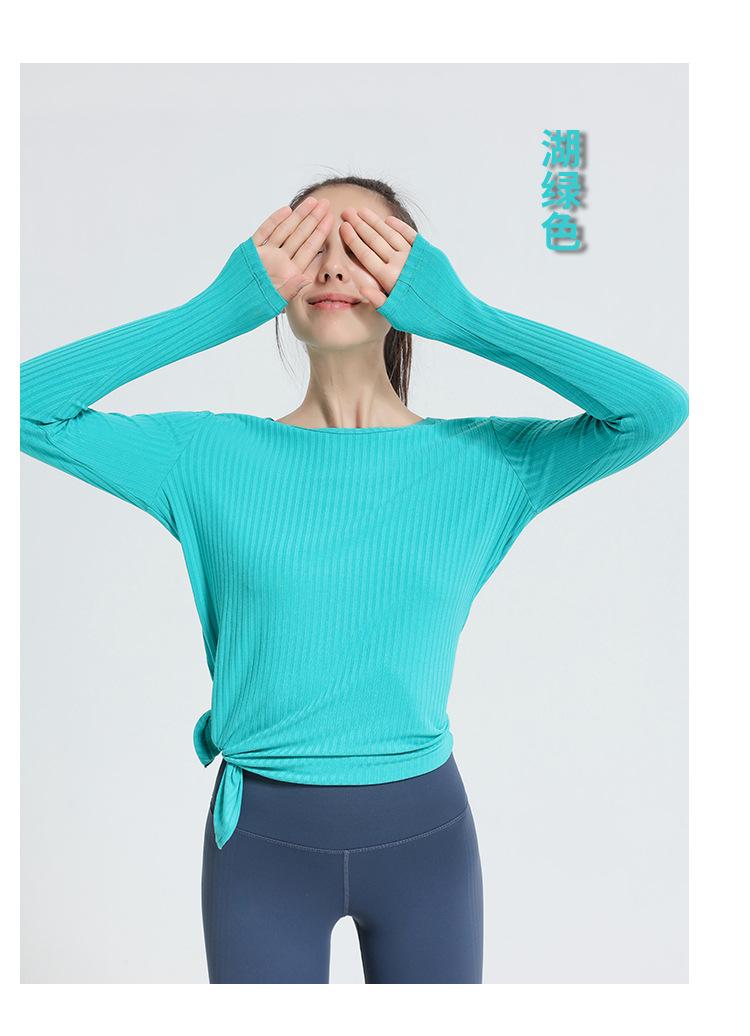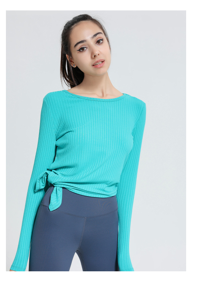 새로운 가을과 겨울 갈비뼈 스포츠 최고 여성의 긴팔 슬림-적합 슬리밍 통기성 둥근 목 소매 요가 달리기 피트니스 세트스토어 가기