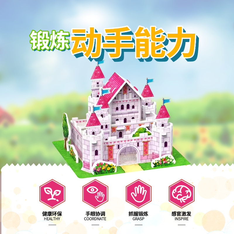 어린이를 위한 3D 입체 퍼즐 교육용 장난감, 종이 퍼즐 조립, 성, 비행기, 자동차 모델, DIY 수제