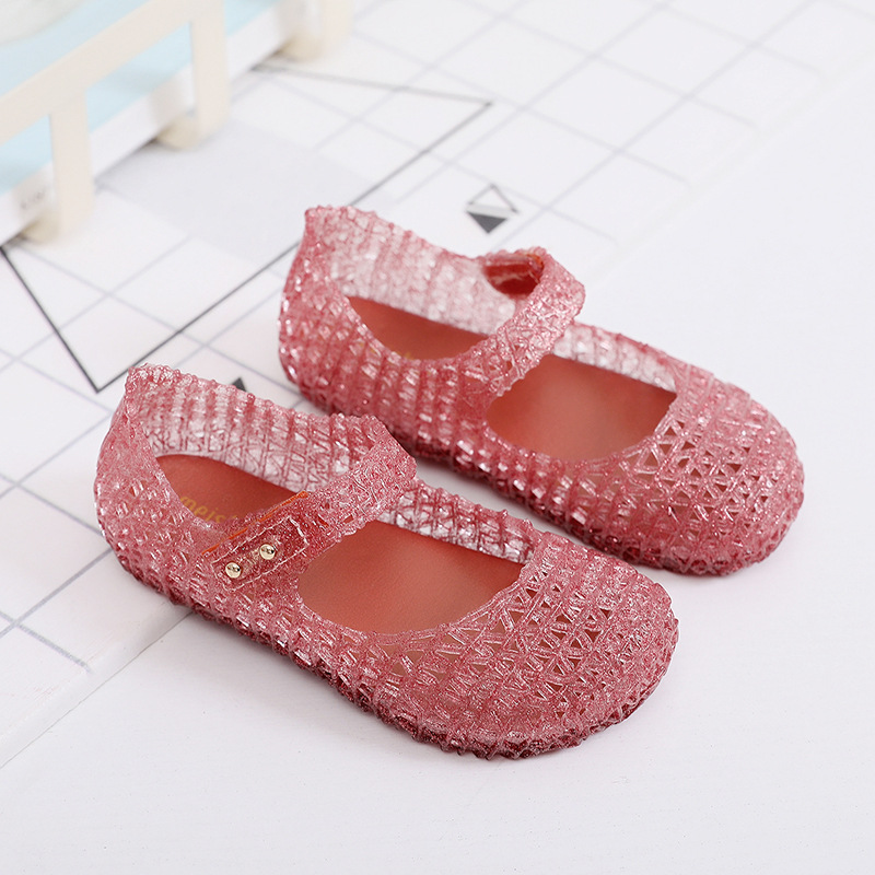 새로운 스타일 Baotou 어린 소녀 공주 크리스탈 신발 여아 부드러운 바닥 플라스틱 중공 통기성 샌들 유행 플랫 슬리퍼