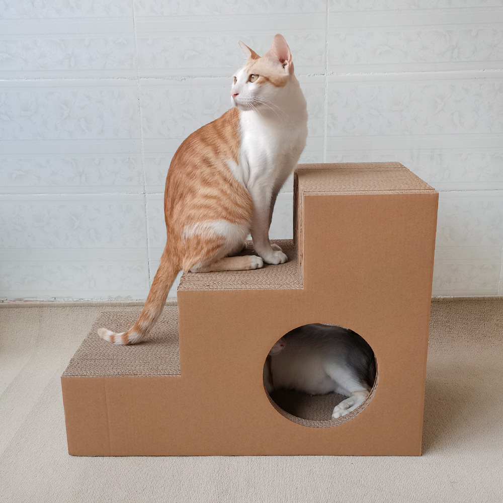 일-골판지 고양이 스크래치 보드 일본과 한국 아마존 베스트 셀러 3 단계 고양이 둥지 고양이 나무 고양이 집-자연 색상