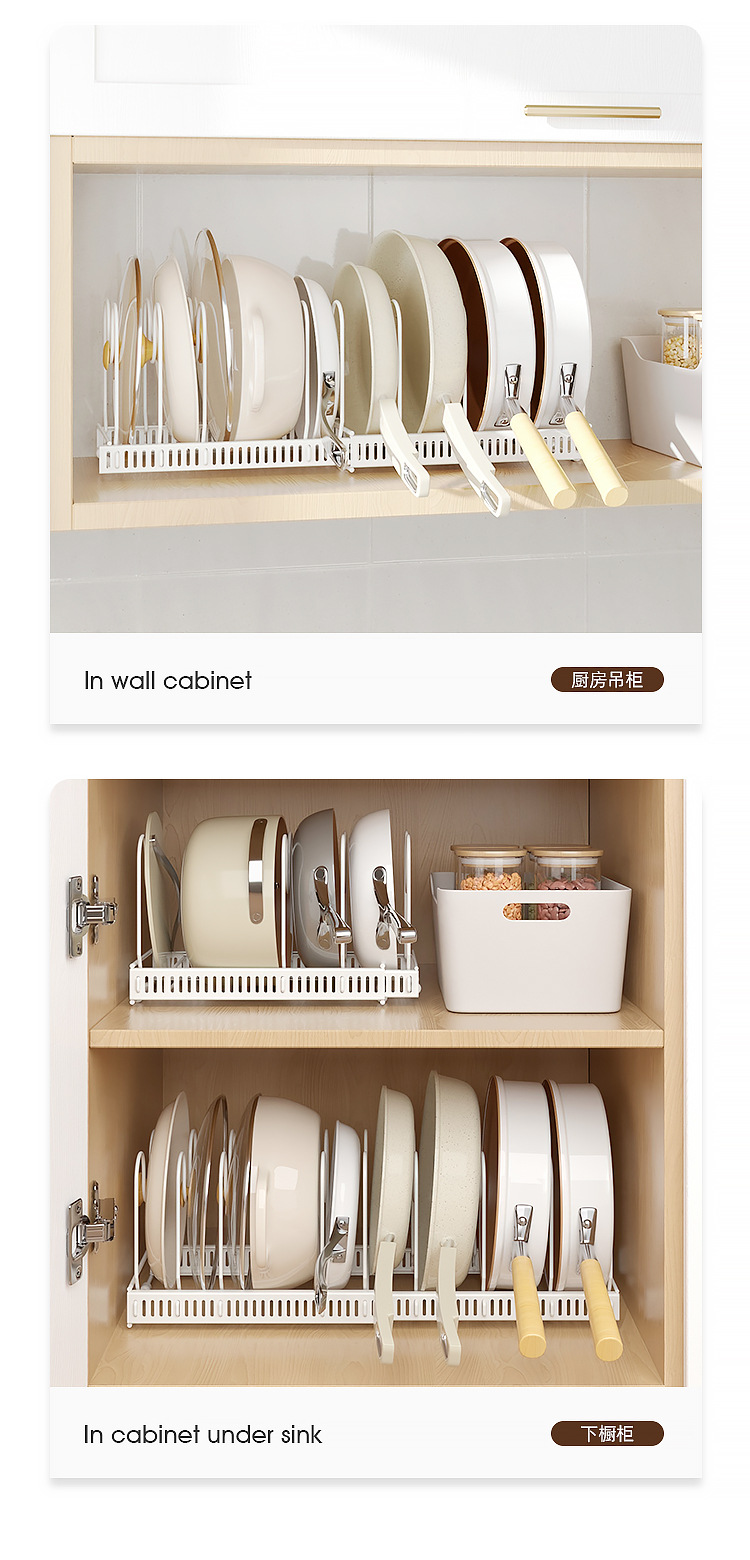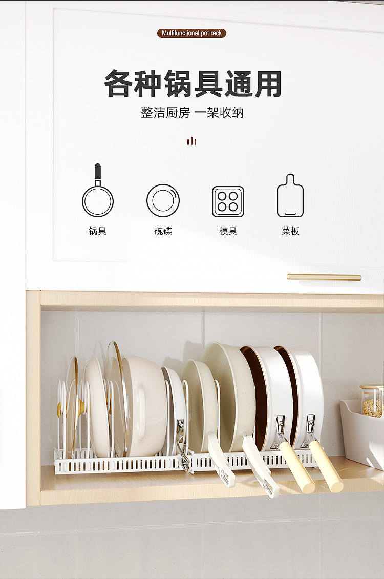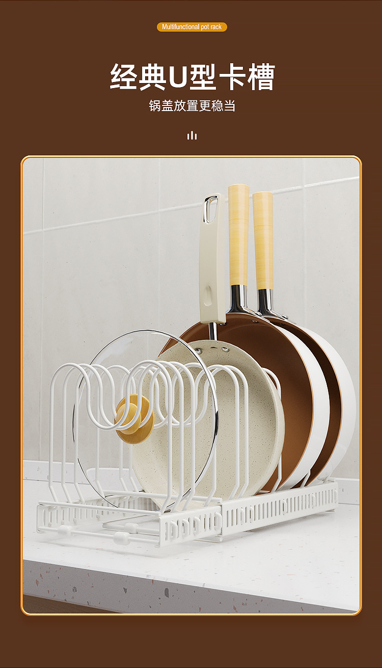국경 철 냄비 보관함 다층 조절 주방 보관함 다기능 데스크탑 개폐식 냄비 뚜껑 랙