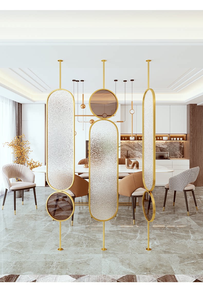 가벼운 고급 금속 스크린 유리 파티션 간단한 현대 거실 파티션 음영 침실 입구 장식 베란다