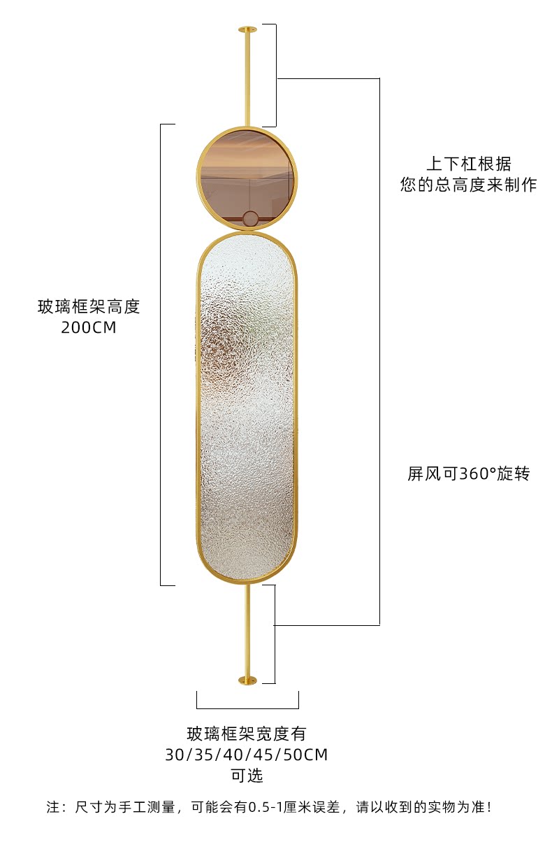 • 골드 프레임 + 유리 50*200CM(단일 팬)