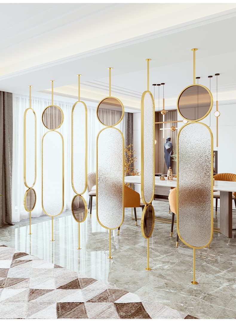 가벼운 고급 금속 스크린 유리 파티션 간단한 현대 거실 파티션 음영 침실 입구 장식 베란다스토어 가기