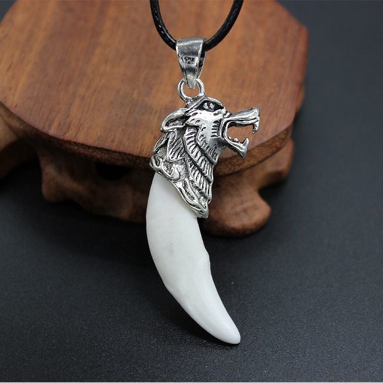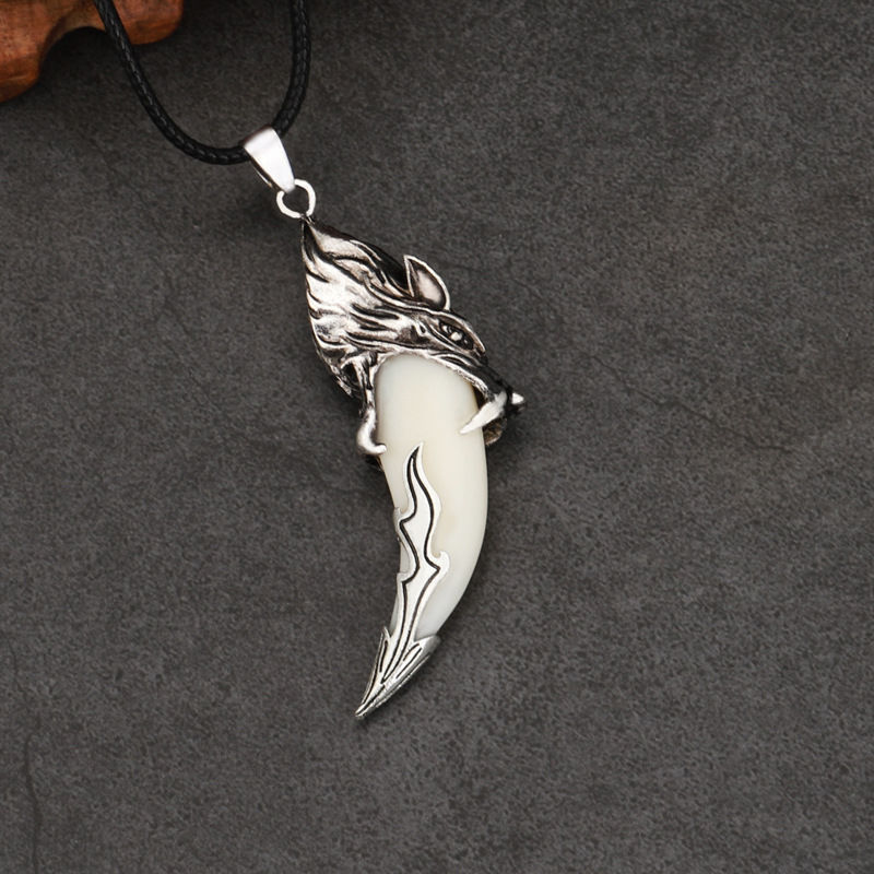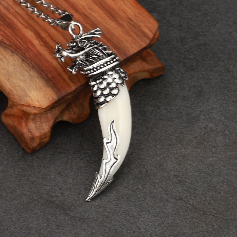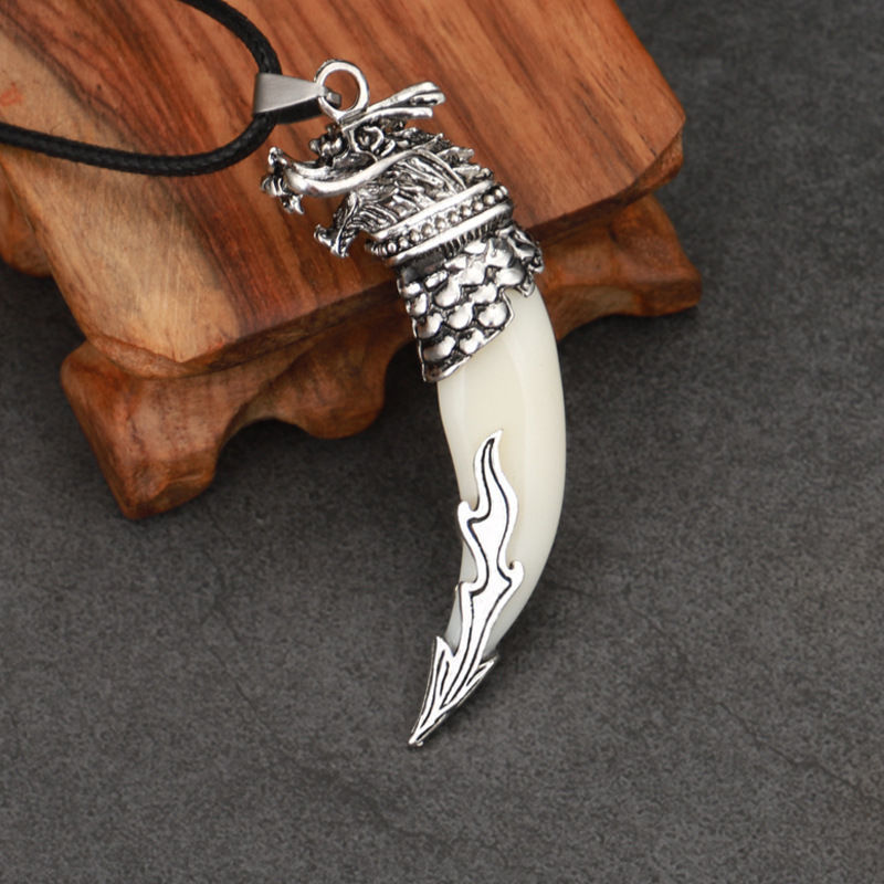 스파이크 목걸이 남자의 검은 개 이빨 펜던트 복고풍 공격적인 성격 의류 액세서리 간단한 패션 보석 유행 선물