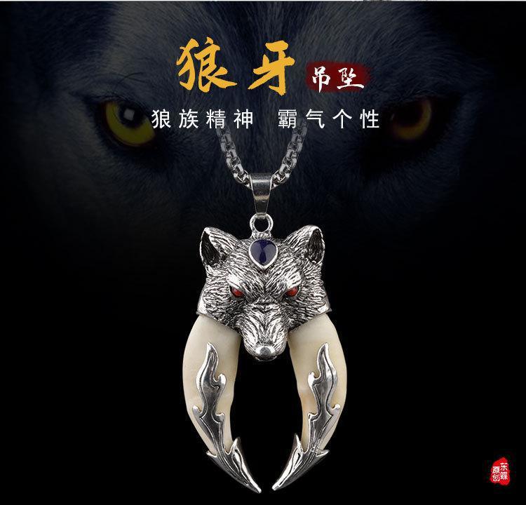 스파이크 목걸이 남자의 검은 개 이빨 펜던트 복고풍 공격적인 성격 의류 액세서리 간단한 패션 보석 유행 선물스토어 가기