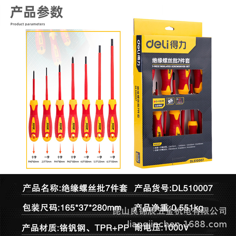 델리 도구 크로스 절연 드라이버 세트 강력한 자기 고전압 전기 드라이버 DL510007 5스토어 가기