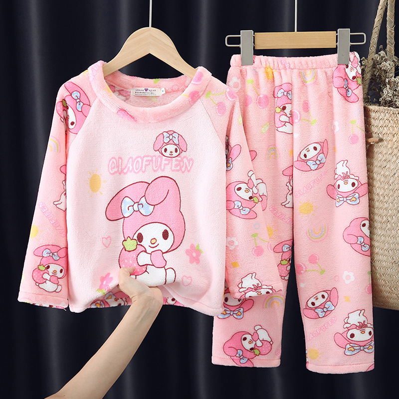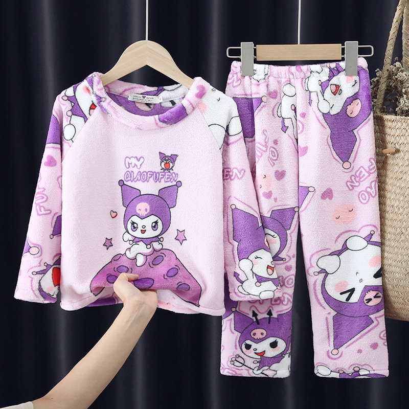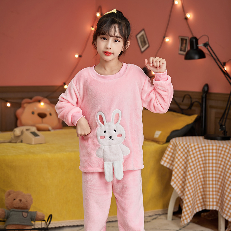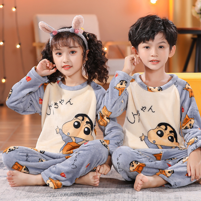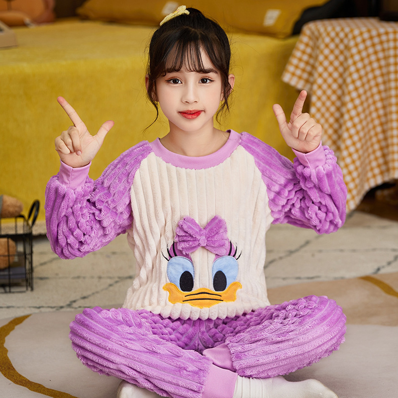어린이 잠옷 대형 어린이 겨울 플란넬 소년과 소녀 두꺼운 산호 양털 만화 귀여운 가정 옷 세트