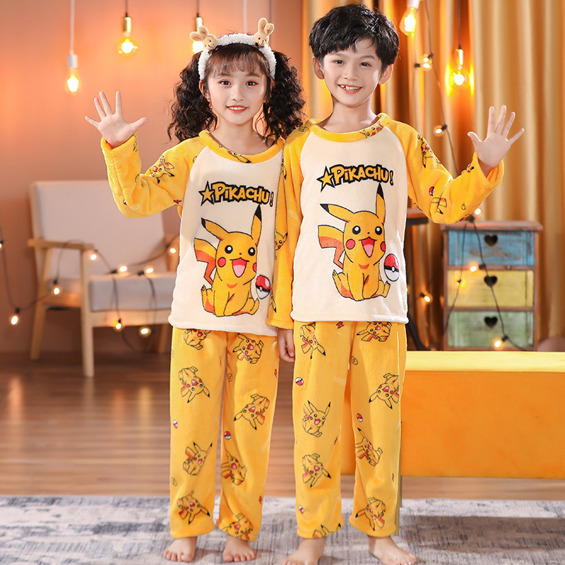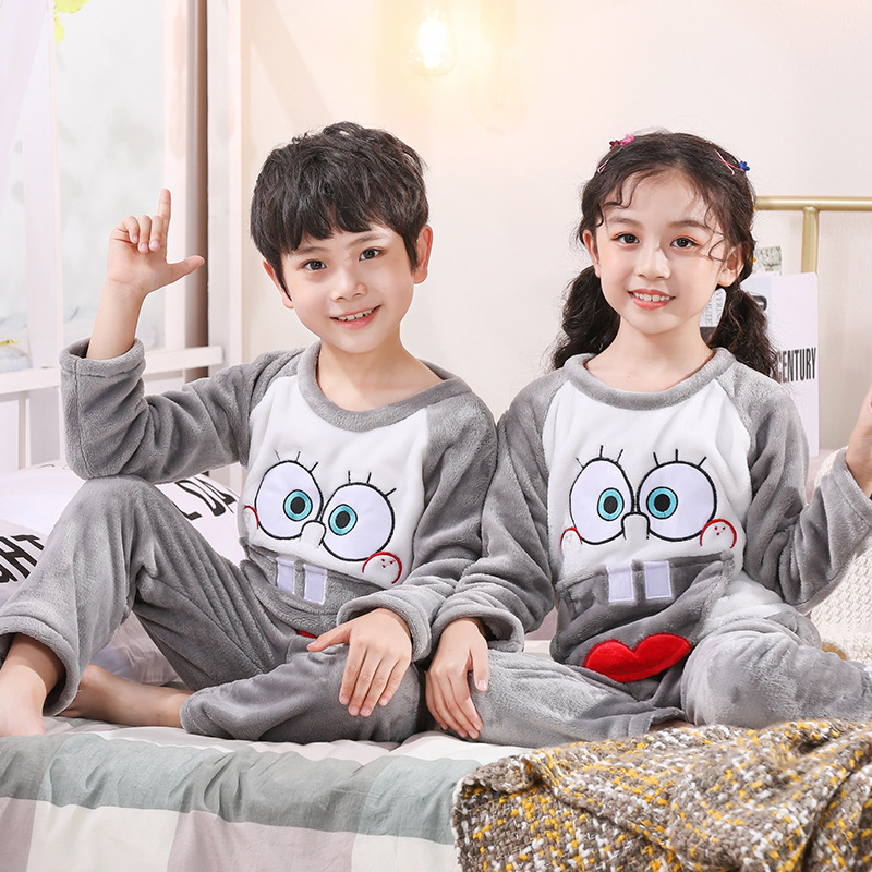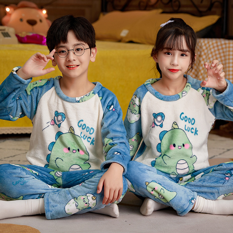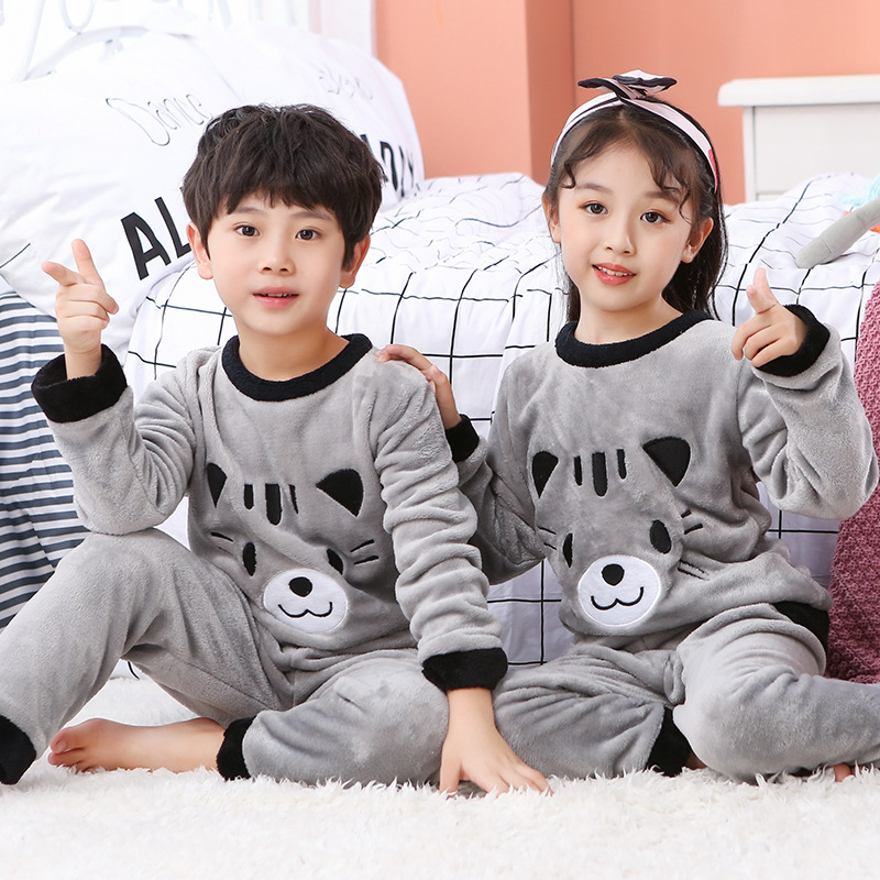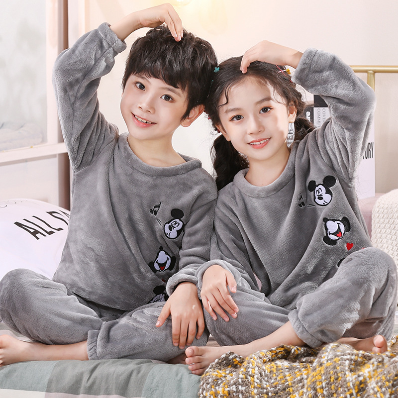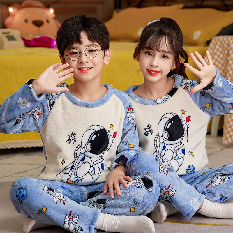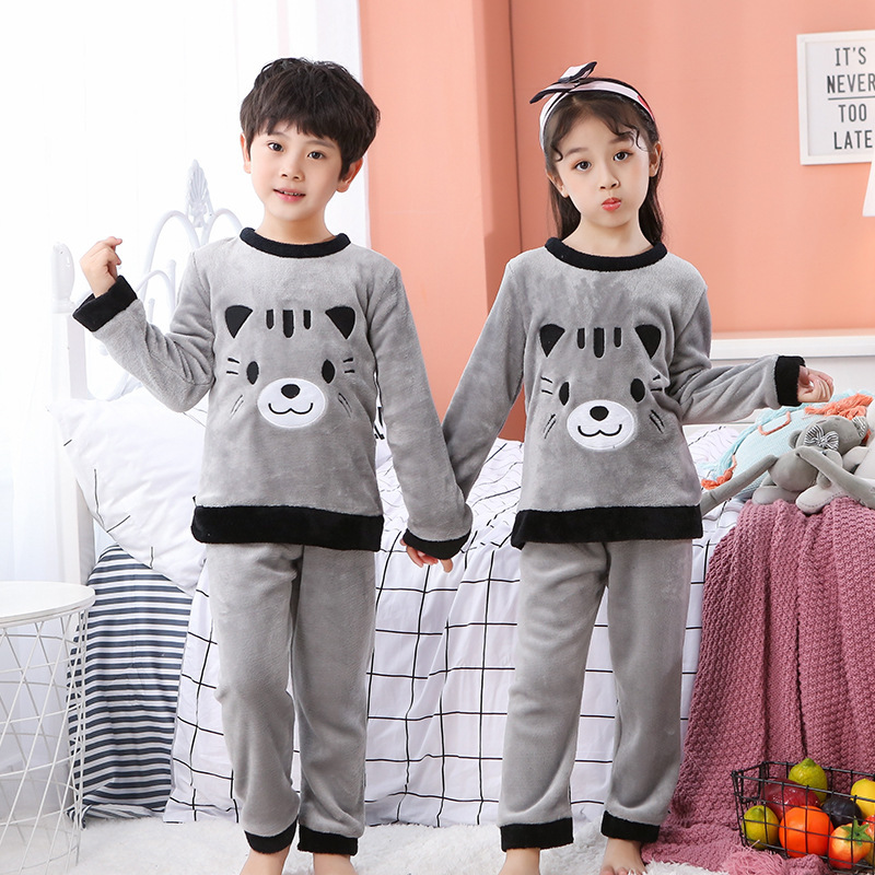 어린이 잠옷 대형 어린이 겨울 플란넬 소년과 소녀 두꺼운 산호 양털 만화 귀여운 가정 옷 세트스토어 가기