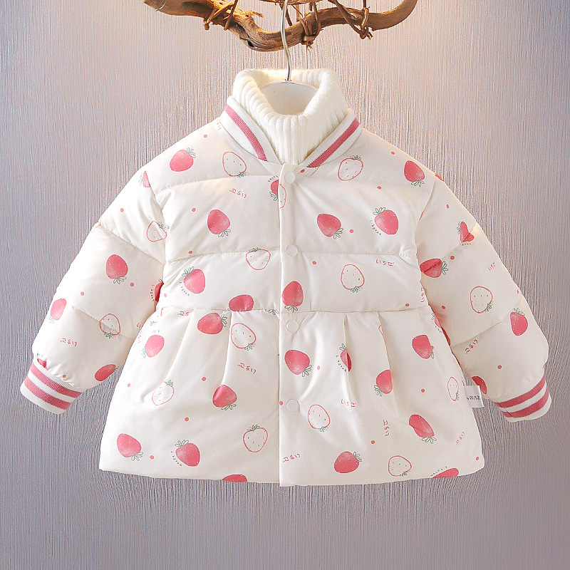 1-2-3 세 여아 새로운 라운드 넥 두꺼운 면 패딩 코트 6-12 개월 아기 소녀의 외출 세트 따뜻한 면 패딩 코트스토어 가기