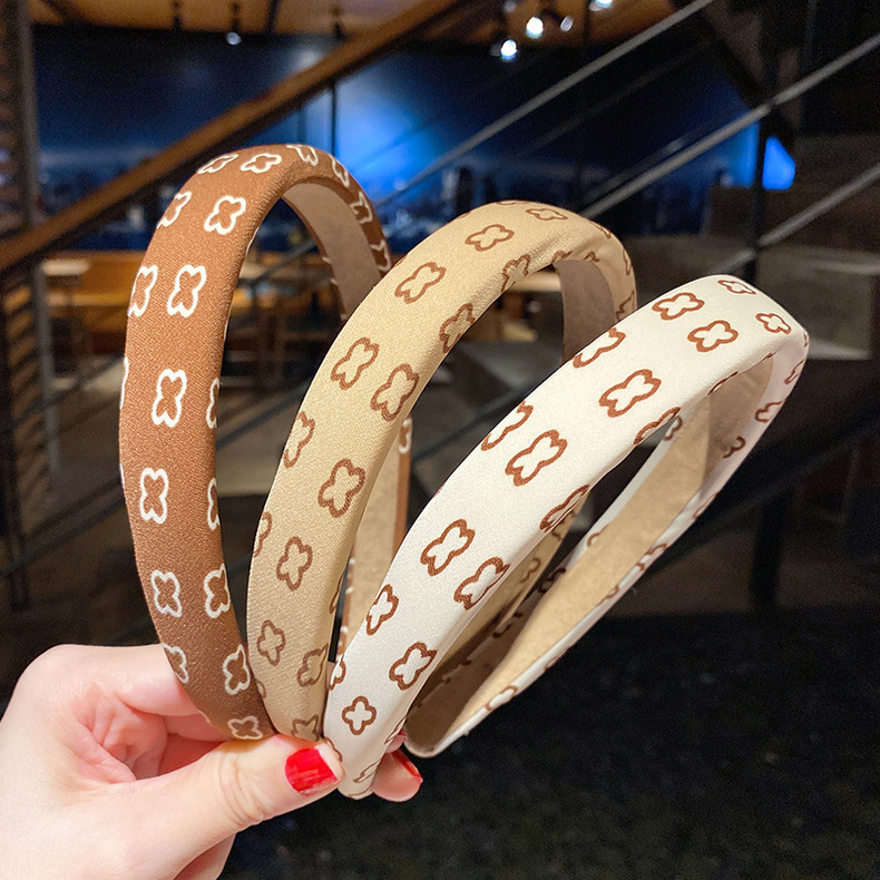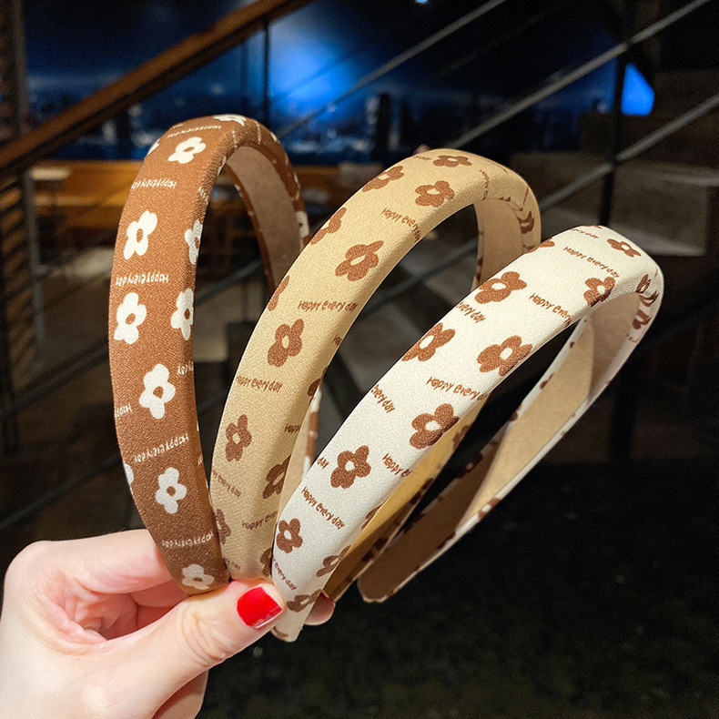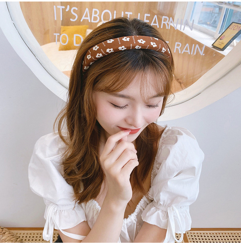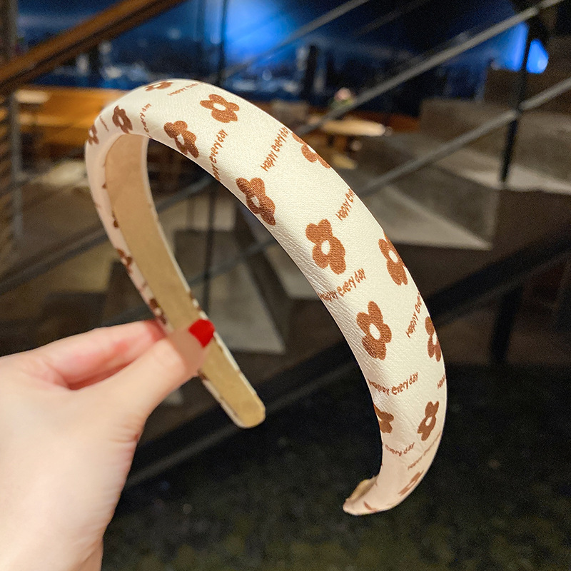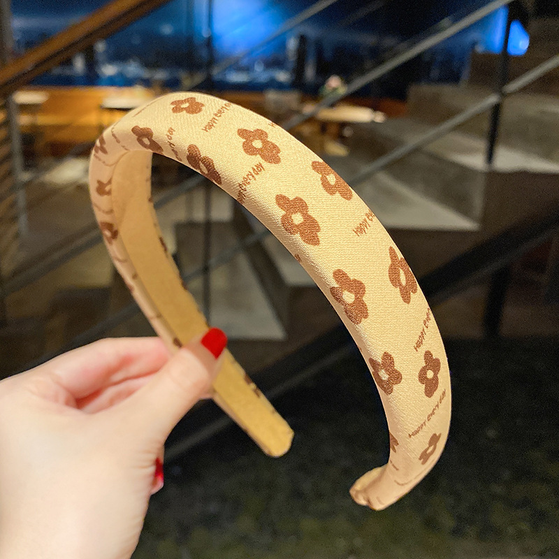 밀크 티 컬러 스폰지 넓은 챙 헤어 후프 여성용 한국 스타일 간단한 워시 헤어 스탬프 여성 우아한 빈티지 헤어 액세서리 머리띠스토어 가기